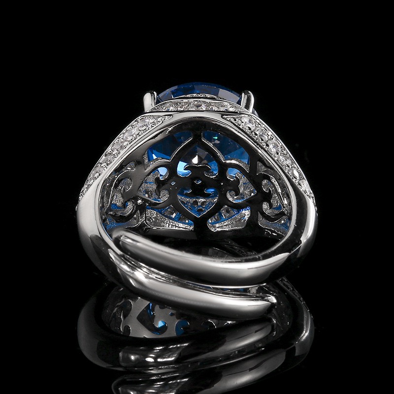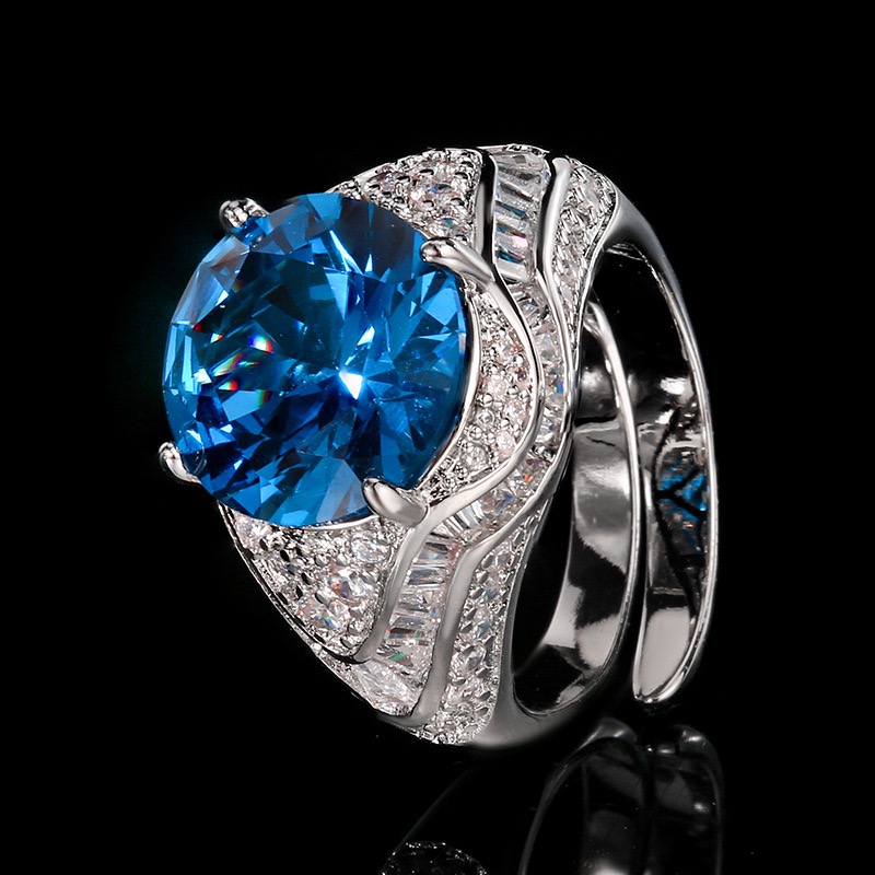新款铜镀银饰品仿红刚玉镶钻开口戒指仿蓝尖晶水钻指环满钻女戒子