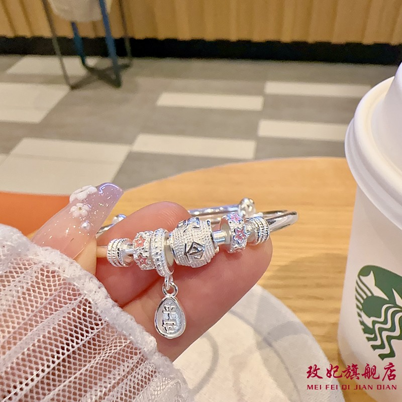 香港正生足银9999聪明伶俐岁岁平安桃花纯银手镯女儿童中大童款