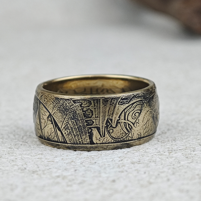 【币风堂】法国黄龙硬币戒指复古手工古币黄铜个性戒指