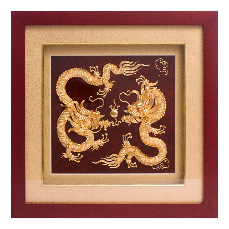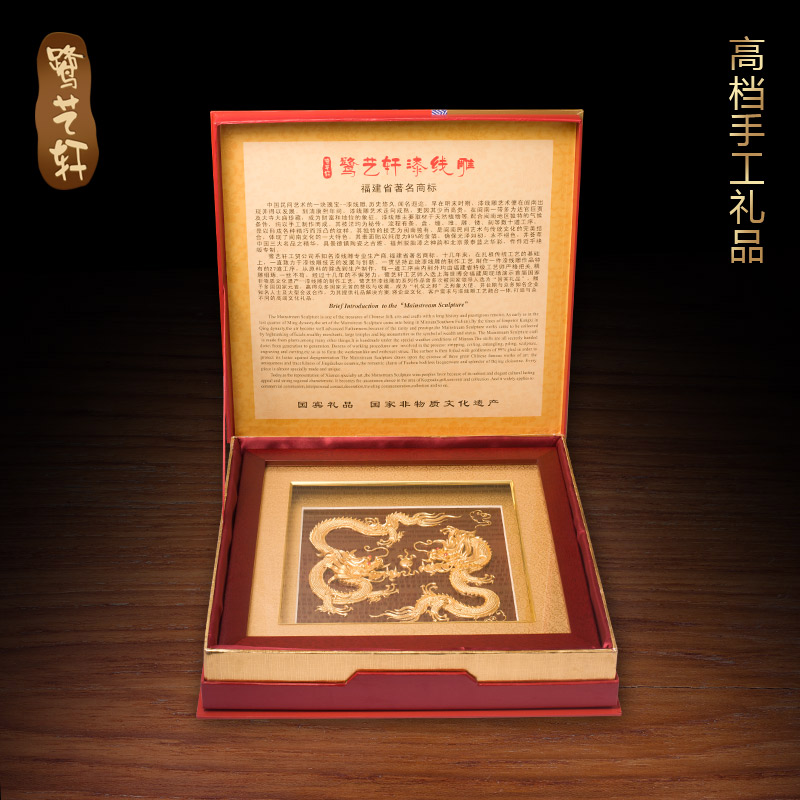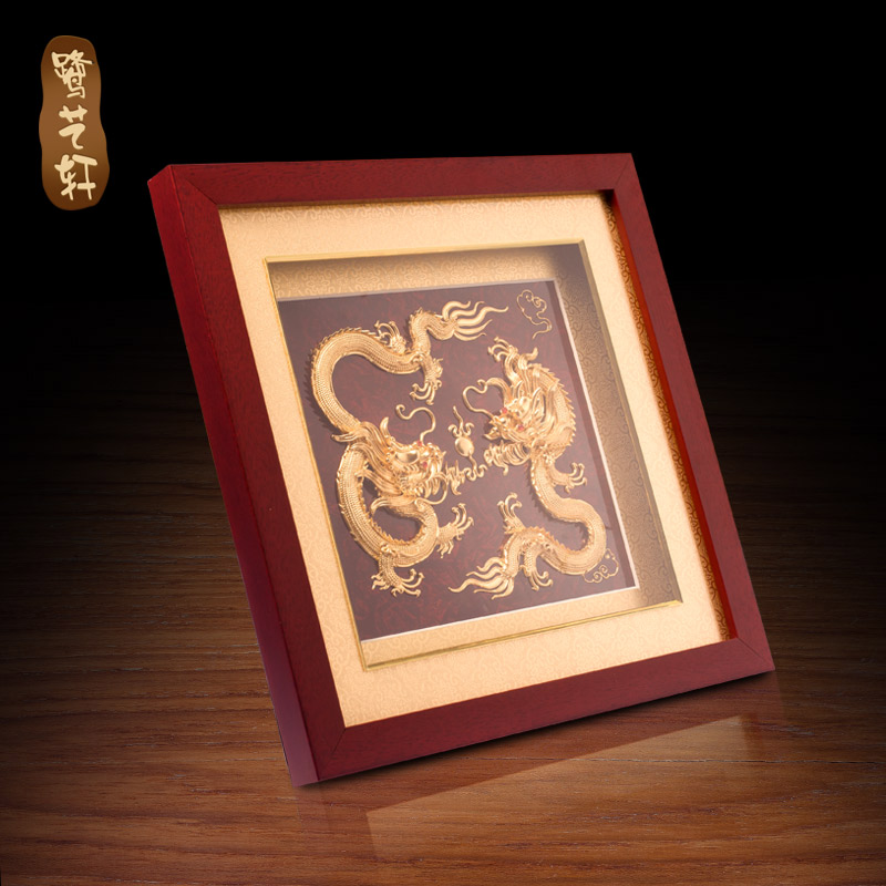 双龙戏珠漆宝砂裱框漆线雕金箔工艺品摆件送朋友闺蜜个性创意礼物