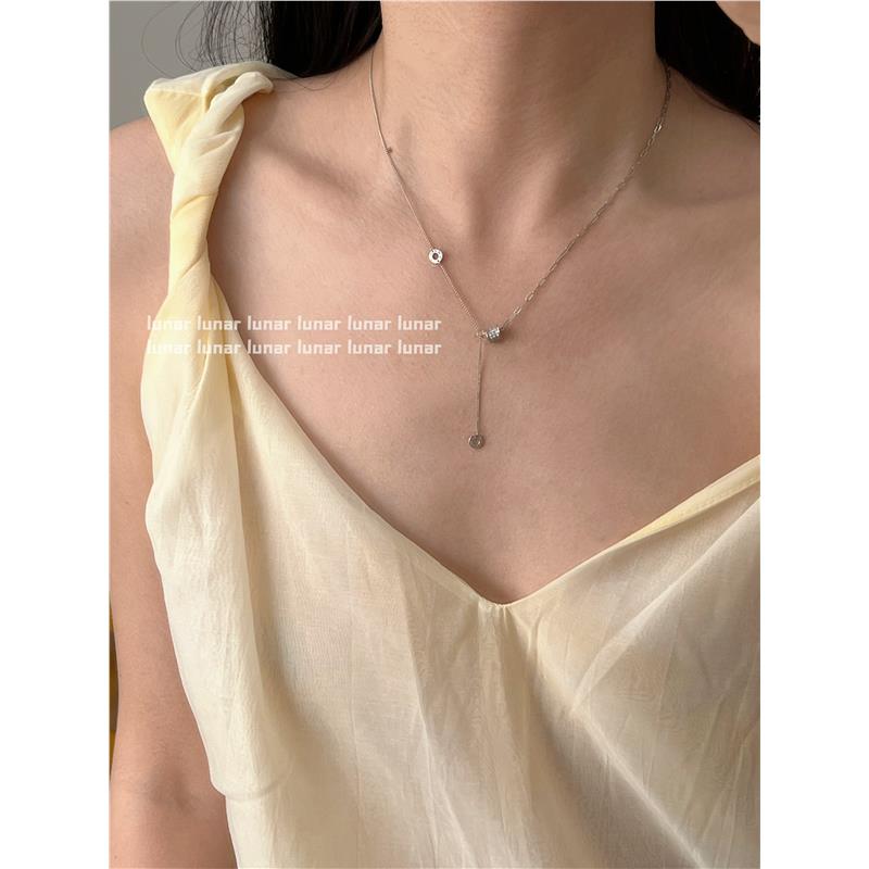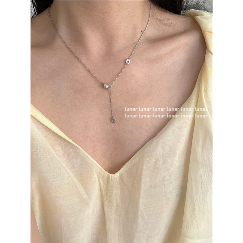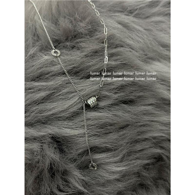 S925纯银满钻小蛮腰项链女款小众设计感拼接链个性锁骨链吊坠颈链