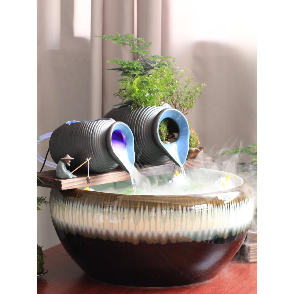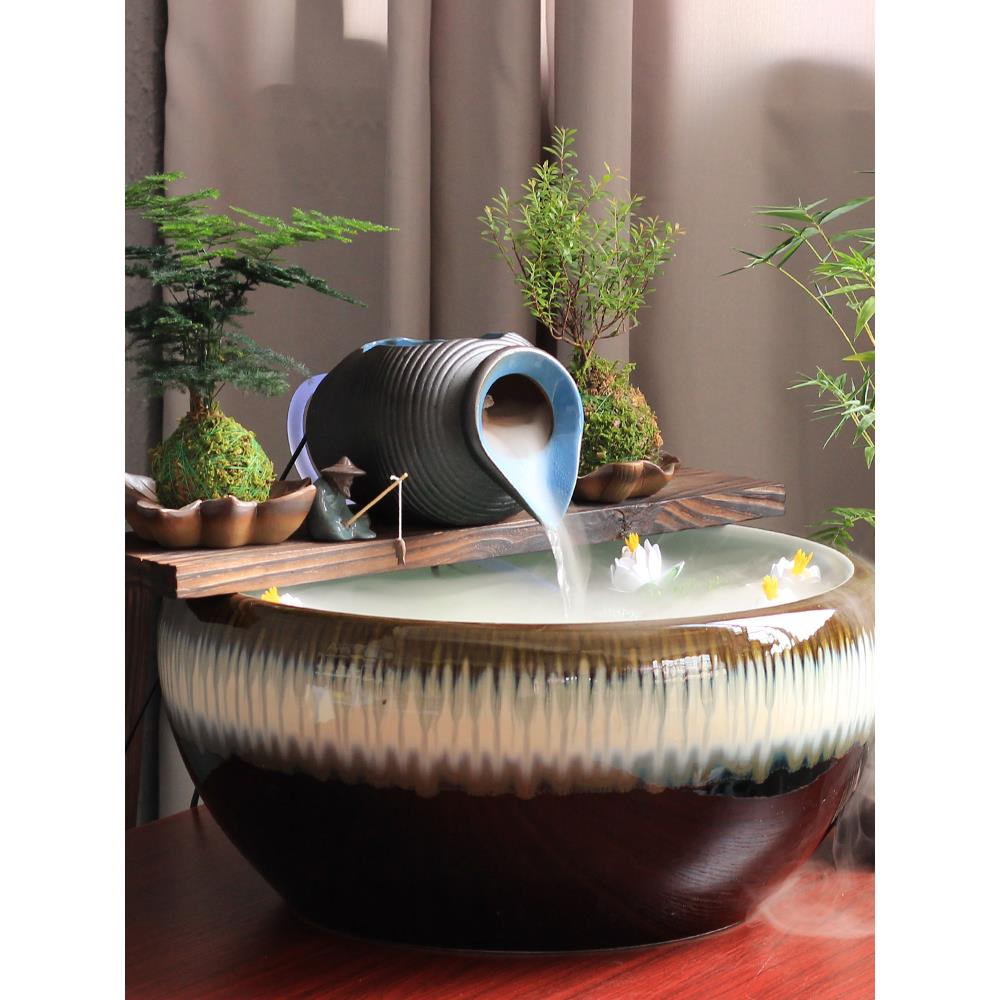 生态缸古法养鱼开口陶瓷罐流水摆件循环过滤配件庭院花园造景diy