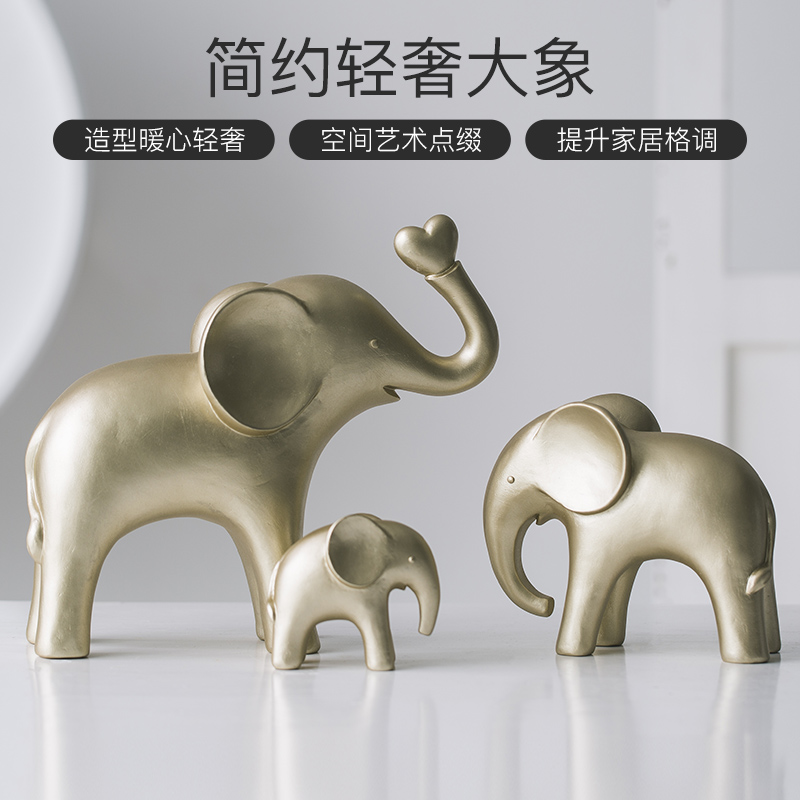轻奢风高级感一家三口大象摆件客厅电视柜酒柜家居装饰品乔迁礼物