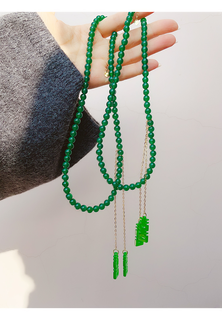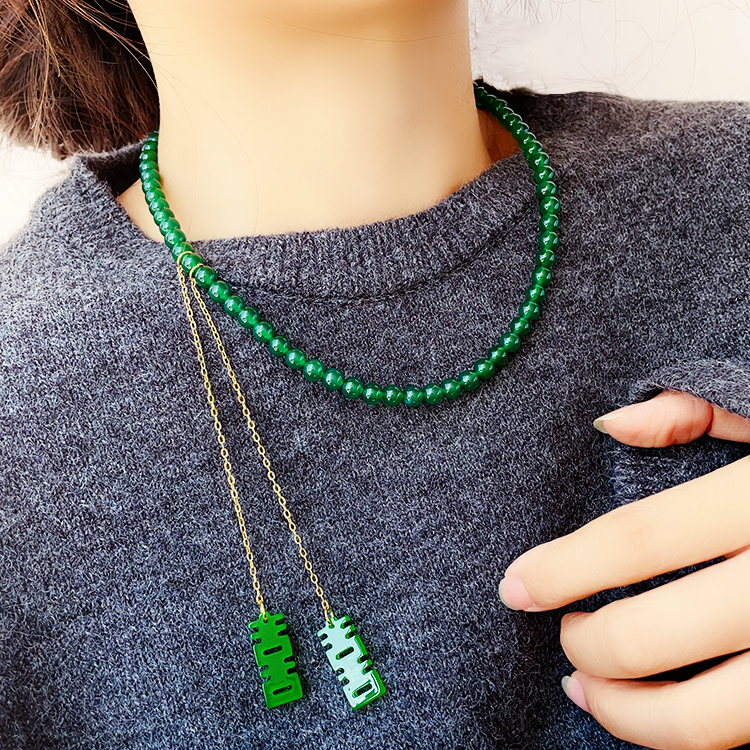 复古时尚藏式祖母绿锁骨链双喜字毛衣链流苏吊坠新中式民族风配饰