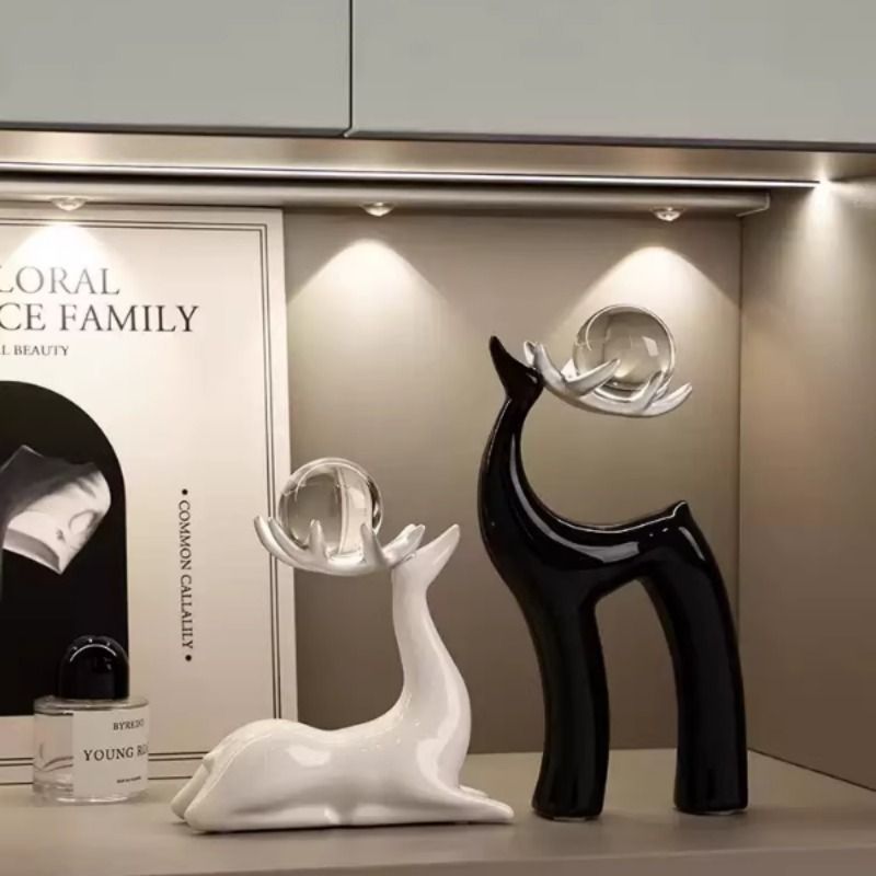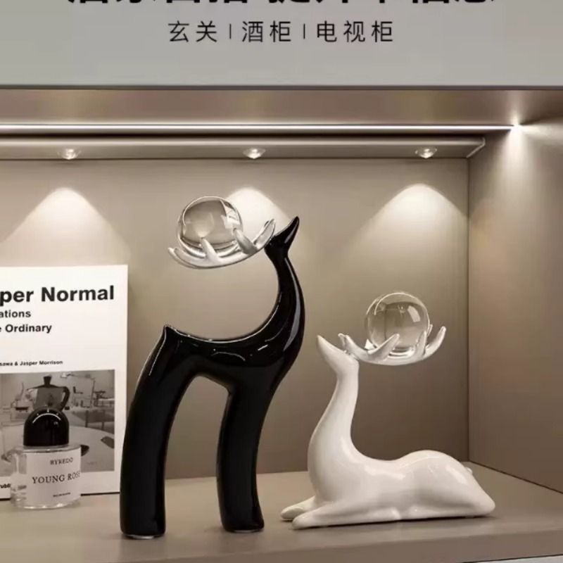 贝汉美麋鹿新家装饰摆件陶瓷轻奢高级感客厅电视玄关酒柜乔迁礼品