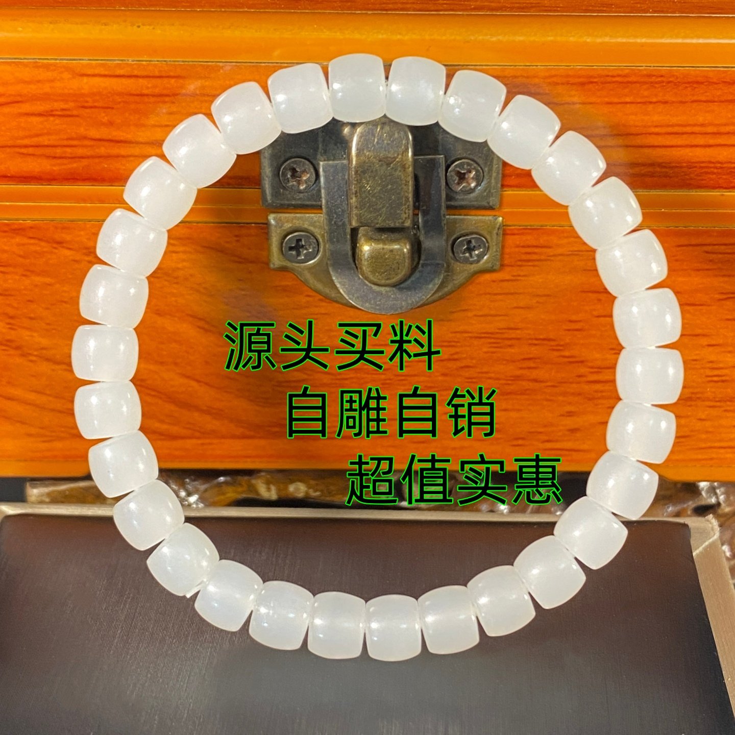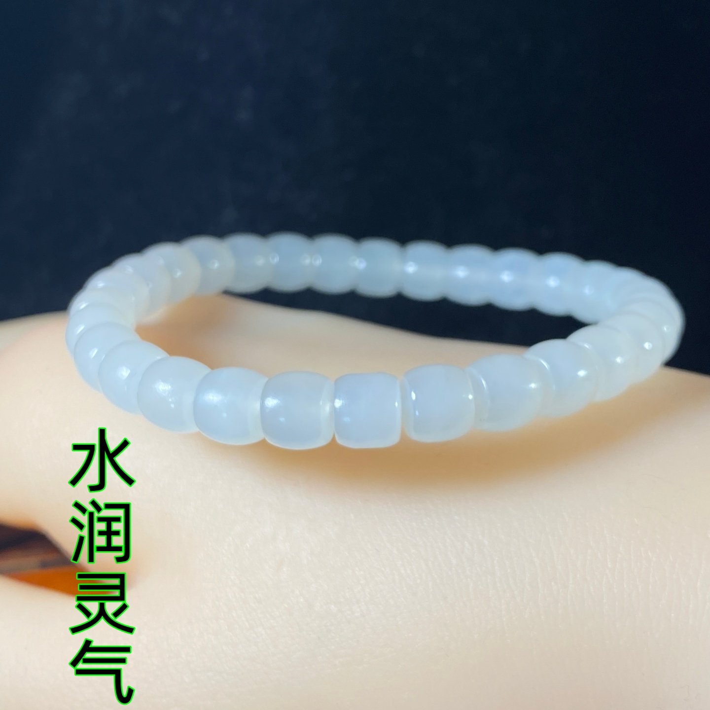 [特惠价】天然新疆和田玉老坑冰底浅晴水羊脂白玉老型珠手链女款