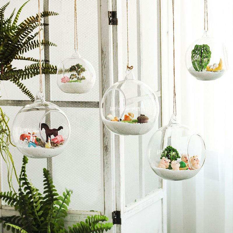 可爱小动物主题带铁架创意玻璃瓶微景观摆件空中吊饰幼儿园手工di