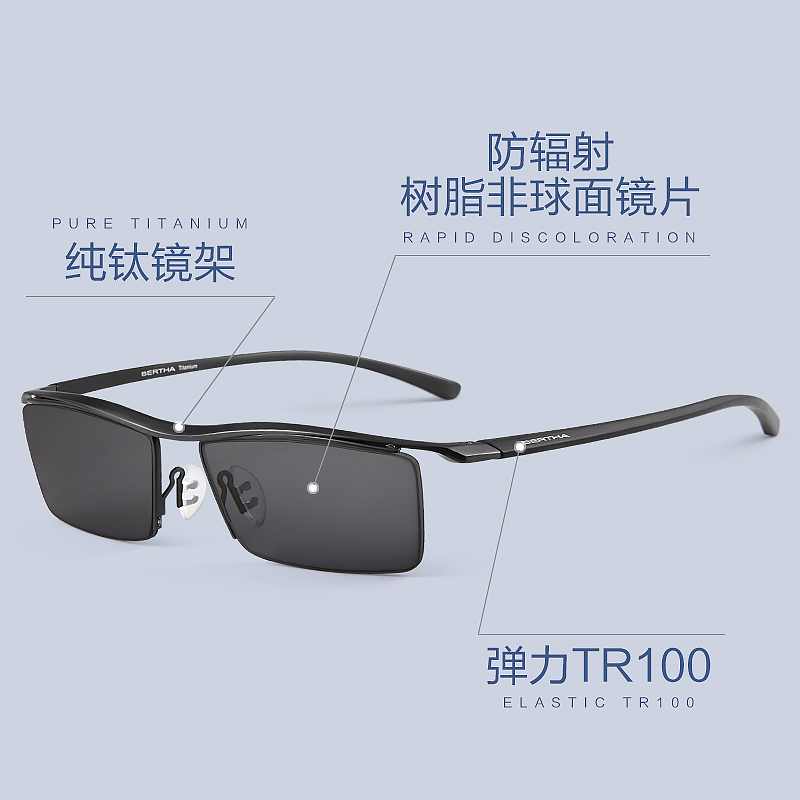 纯钛变色镜男眼镜开车司机变色近视眼镜半框男款防辐射太阳镜配镜