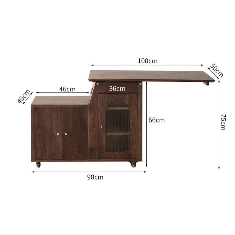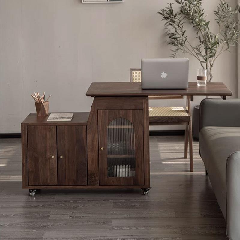 北美黑胡桃木实木茶车客厅沙发茶水边柜边几家用可移动旋转小茶桌