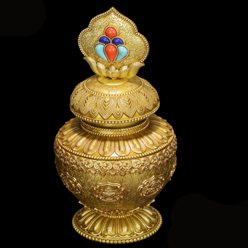 藏密坊 慧宝八吉祥宝藏瓶A款黄铜宝瓶佛堂桌面摆件供品聚财财神