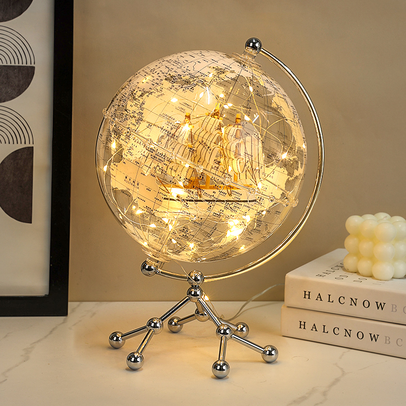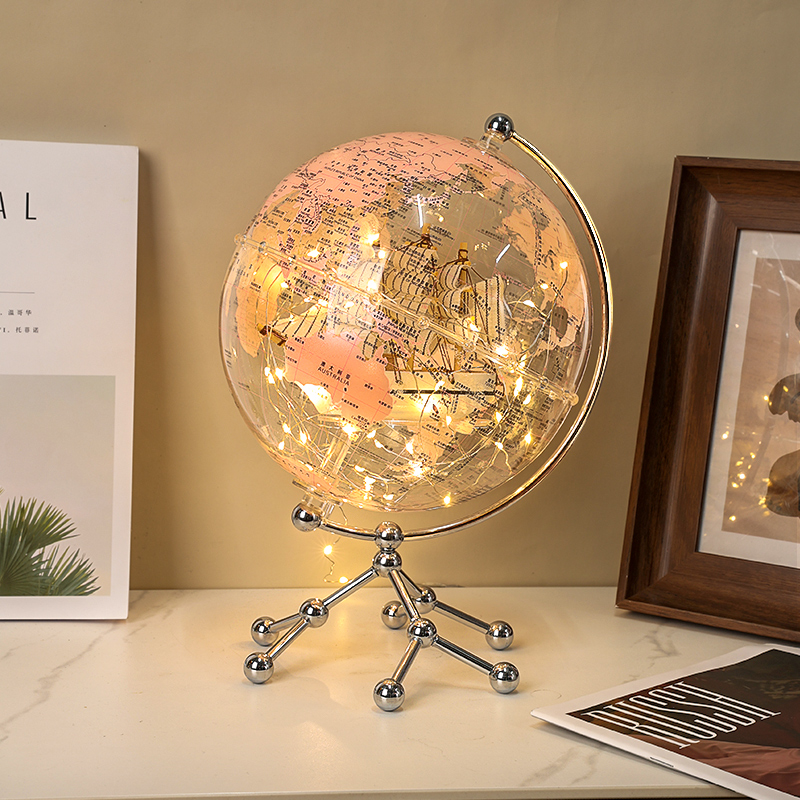 轻奢透明地球仪摆件办公室桌面装饰玄关电视Q酒柜台面摆设台灯