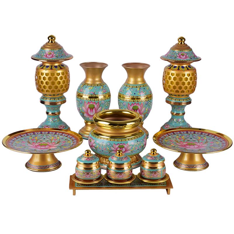 佛具供佛供具配套装珐琅彩香炉果盘圣水杯长明灯花瓶室内复古包邮