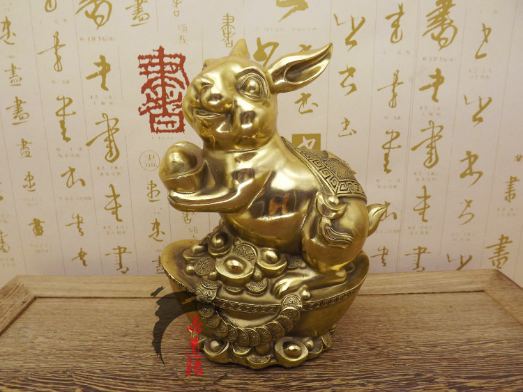 大号铜兔纯铜兔子铜十二生肖兔黄铜兔招财兔金钱兔属兔工艺品摆件