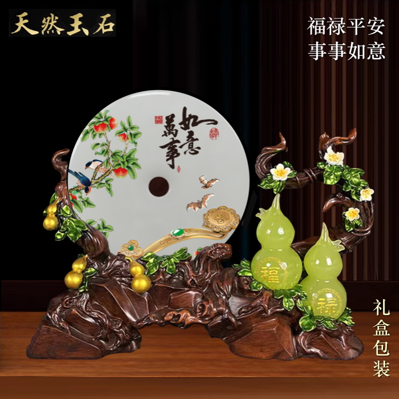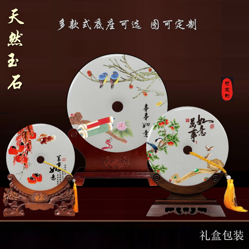 事事如意玉石平安扣摆件万事如意玉雕装饰品定制礼品开业乔迁礼物