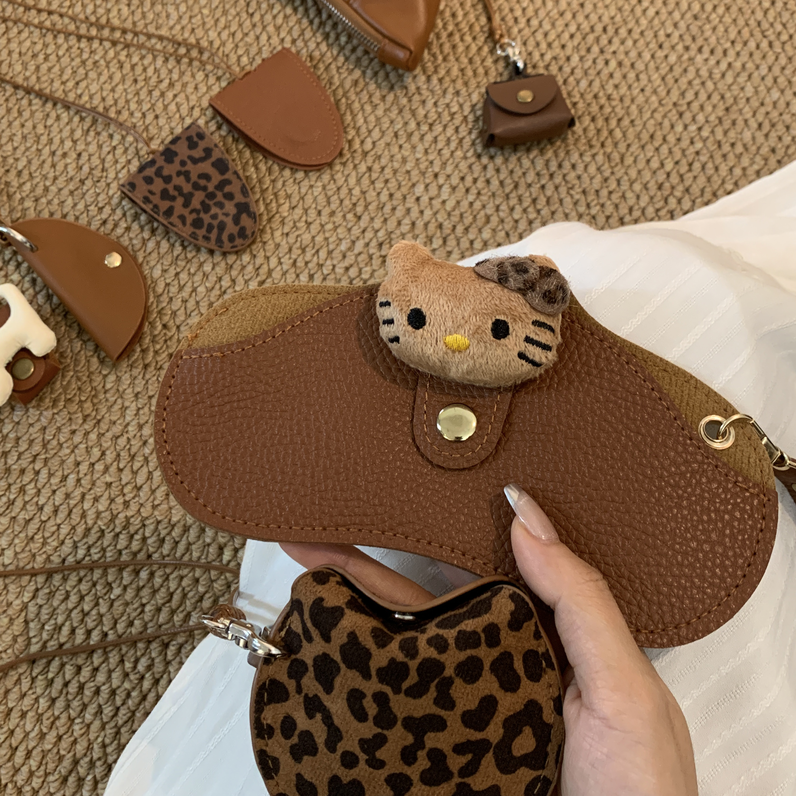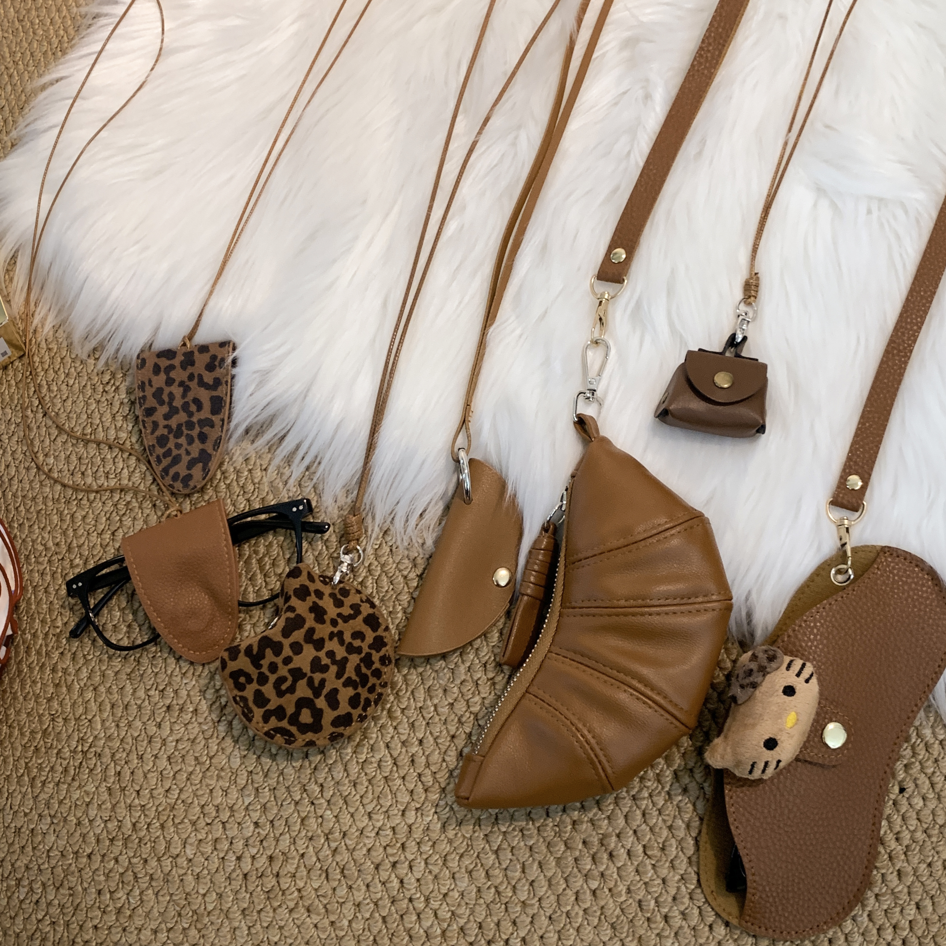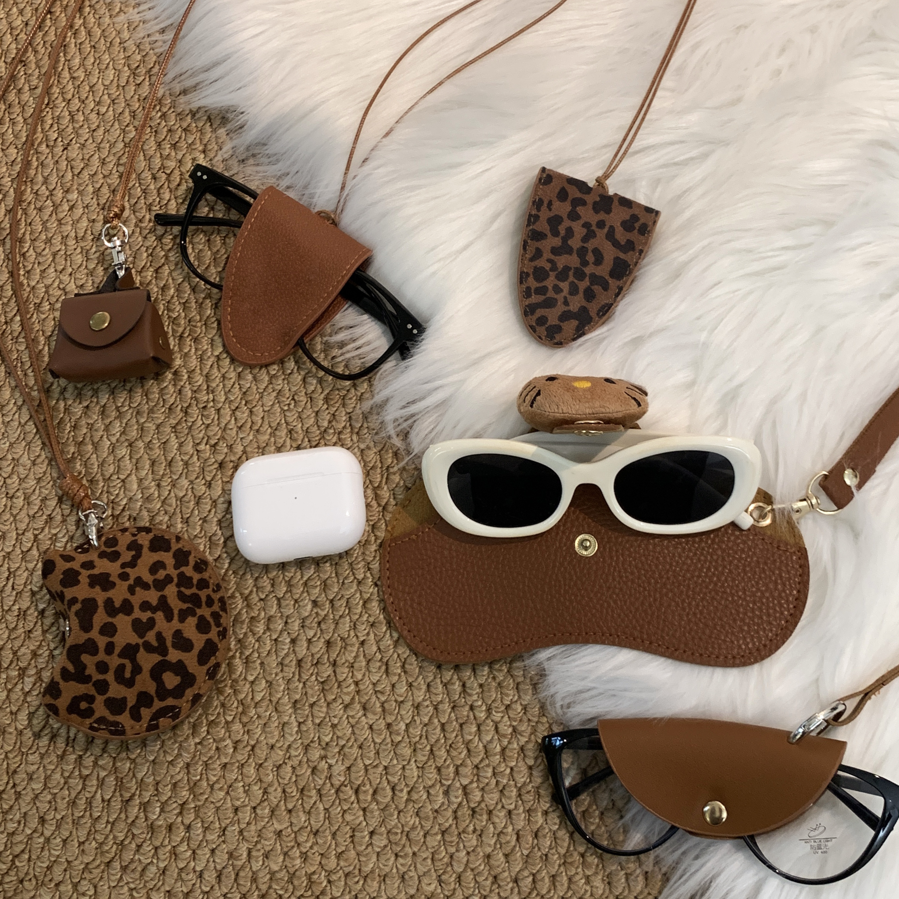 豹纹磁吸眼镜夹项链女皮质眼镜盒长款挂脖太阳墨镜包耳机包收纳