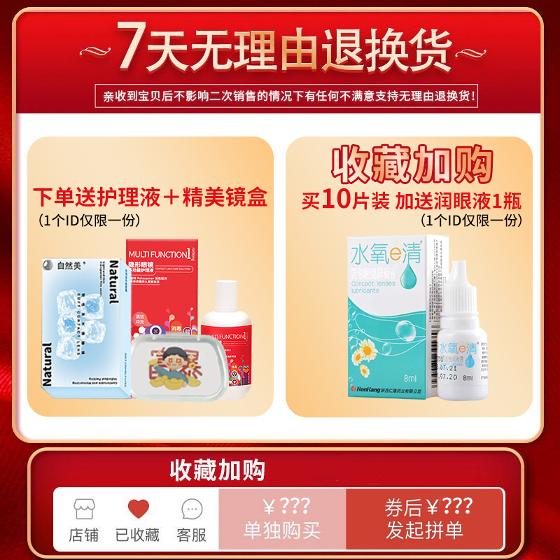 自然美透明镜片半年抛2片试用新手带度数防蓝光年抛隐形眼镜AM