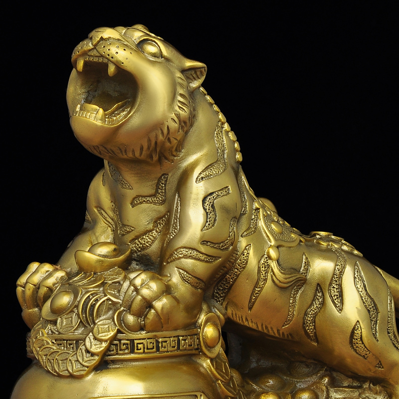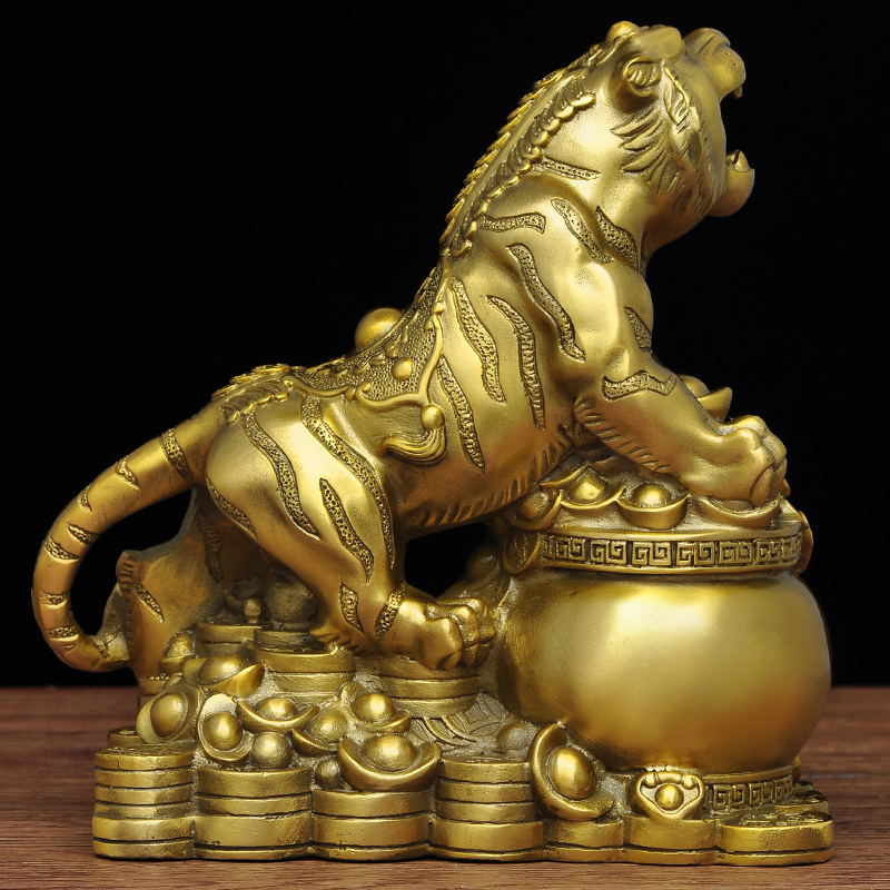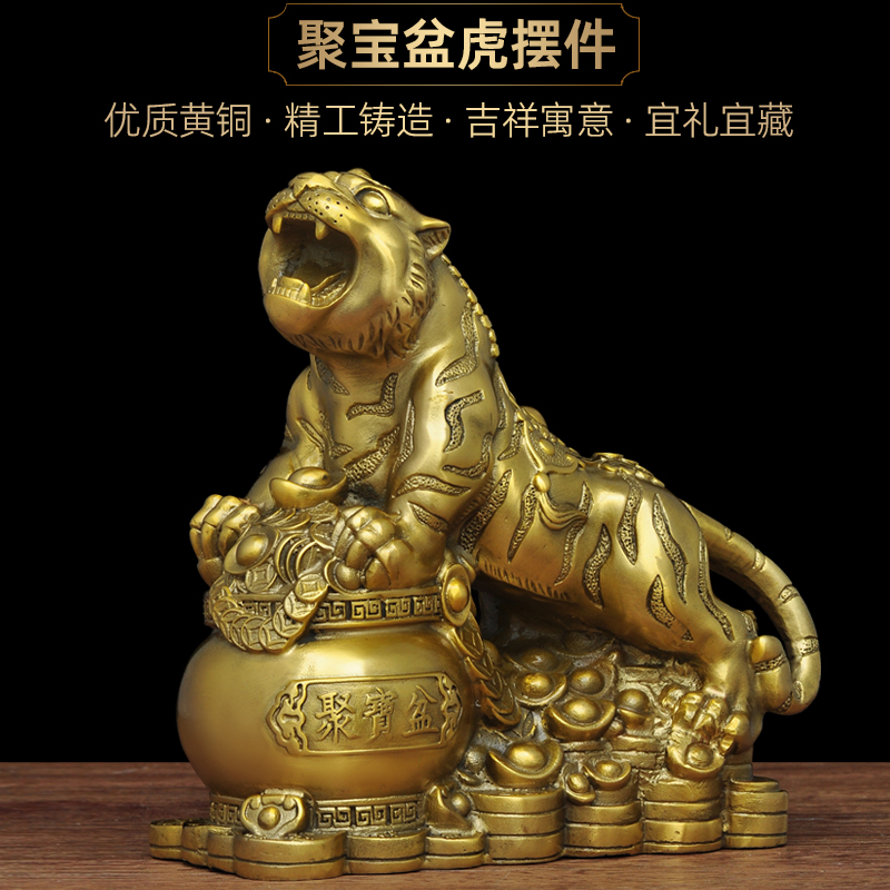 全铜老虎摆件生肖虎聚宝盆摆设家居客厅招财风水工艺品玄关装饰品