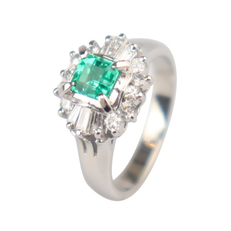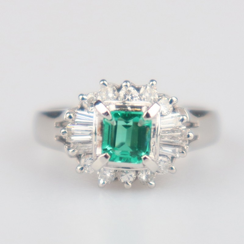【自营】中古95新日本进口商品祖母绿群镶钻石戒指铂金90048号