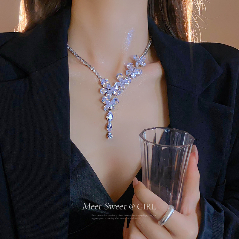 超闪锆石礼服项链配饰高级感轻奢小众新娘敬酒服配婚纱锁骨链颈链