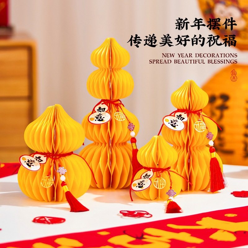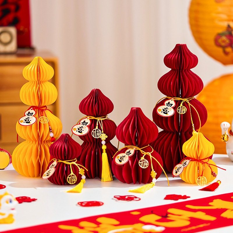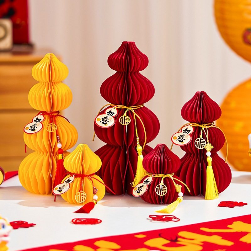 2026马年春节装饰品红色纸葫芦摆件过年家用客厅门店喜庆场景布置