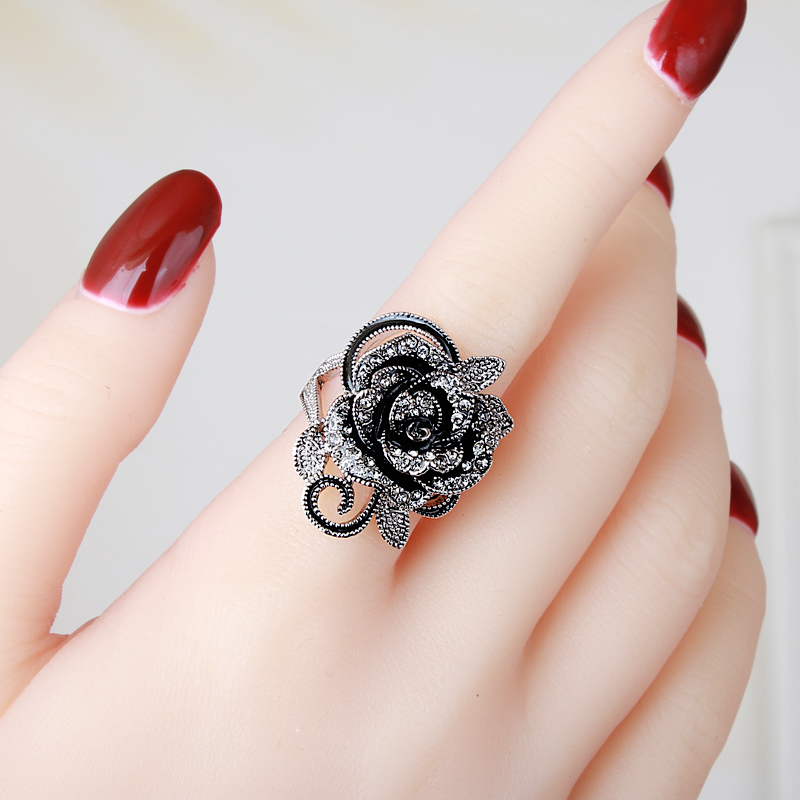 精致复古水钻玫瑰花食指戒指女高级感时尚夸张大个性装饰指环饰品