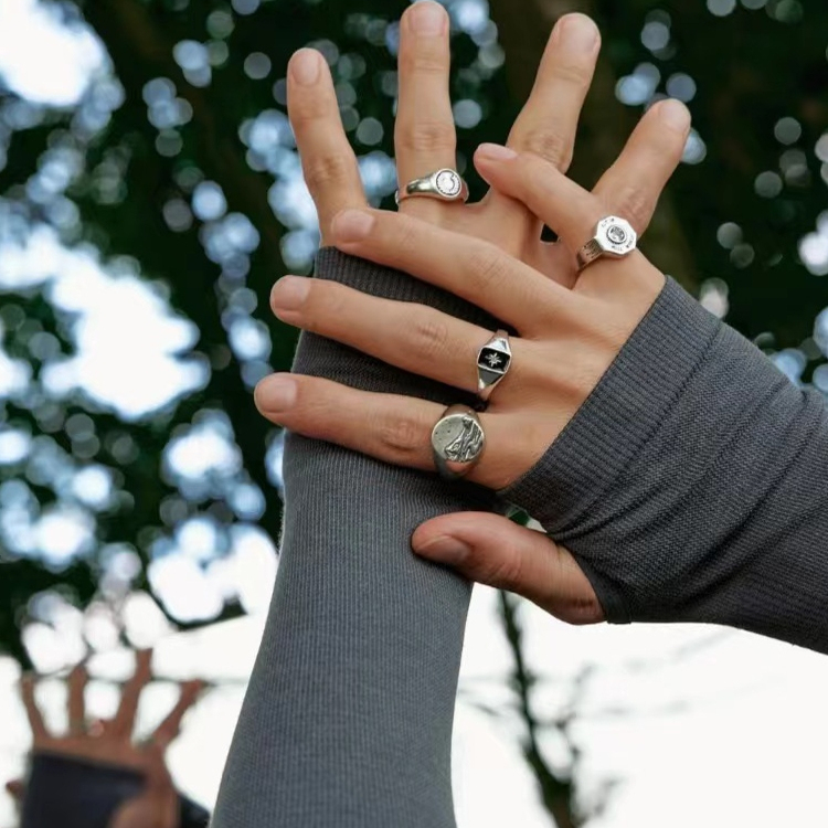纯银戒指胜利者徽章锦绣男女情侣对戒原创设计银饰20号定制图案款