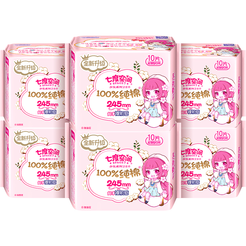 七度空间卫生巾少女纯棉245mm日用姨妈巾超薄透气正品官方旗舰店