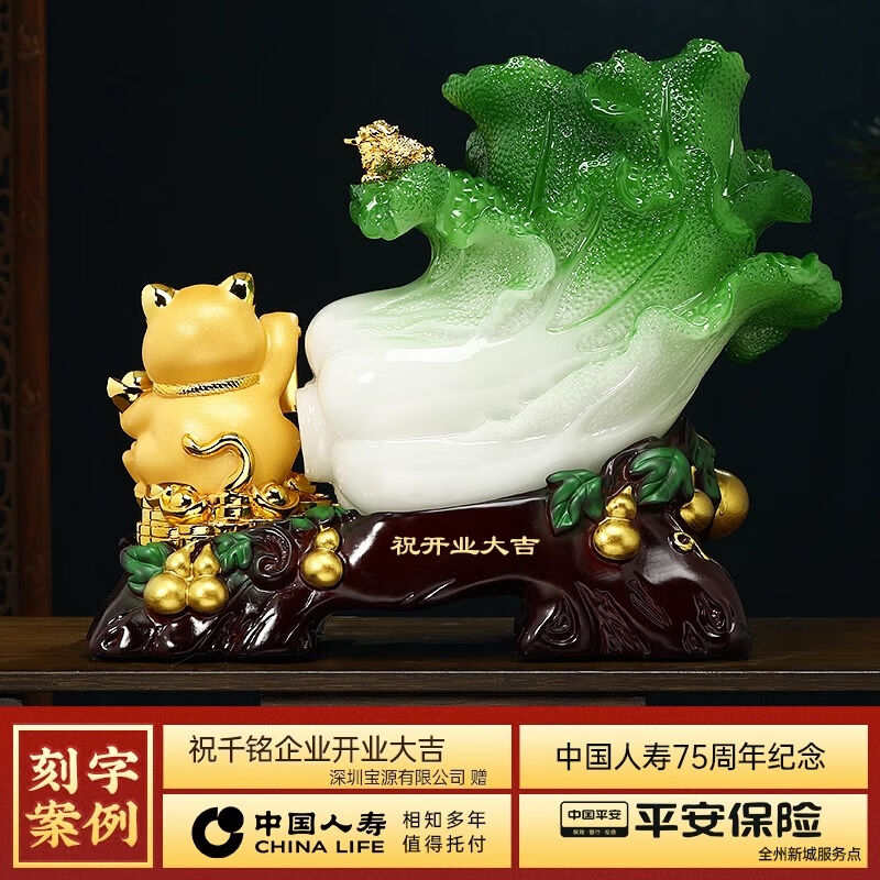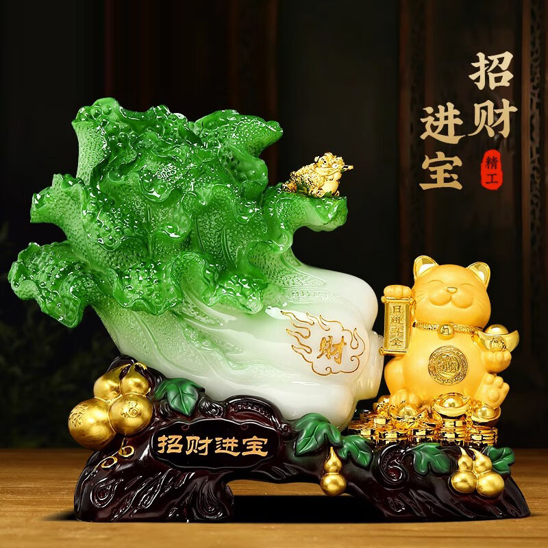 碧琉璃招财进宝白菜摆件招财猫客厅电视柜收银台装饰品店铺乔迁开
