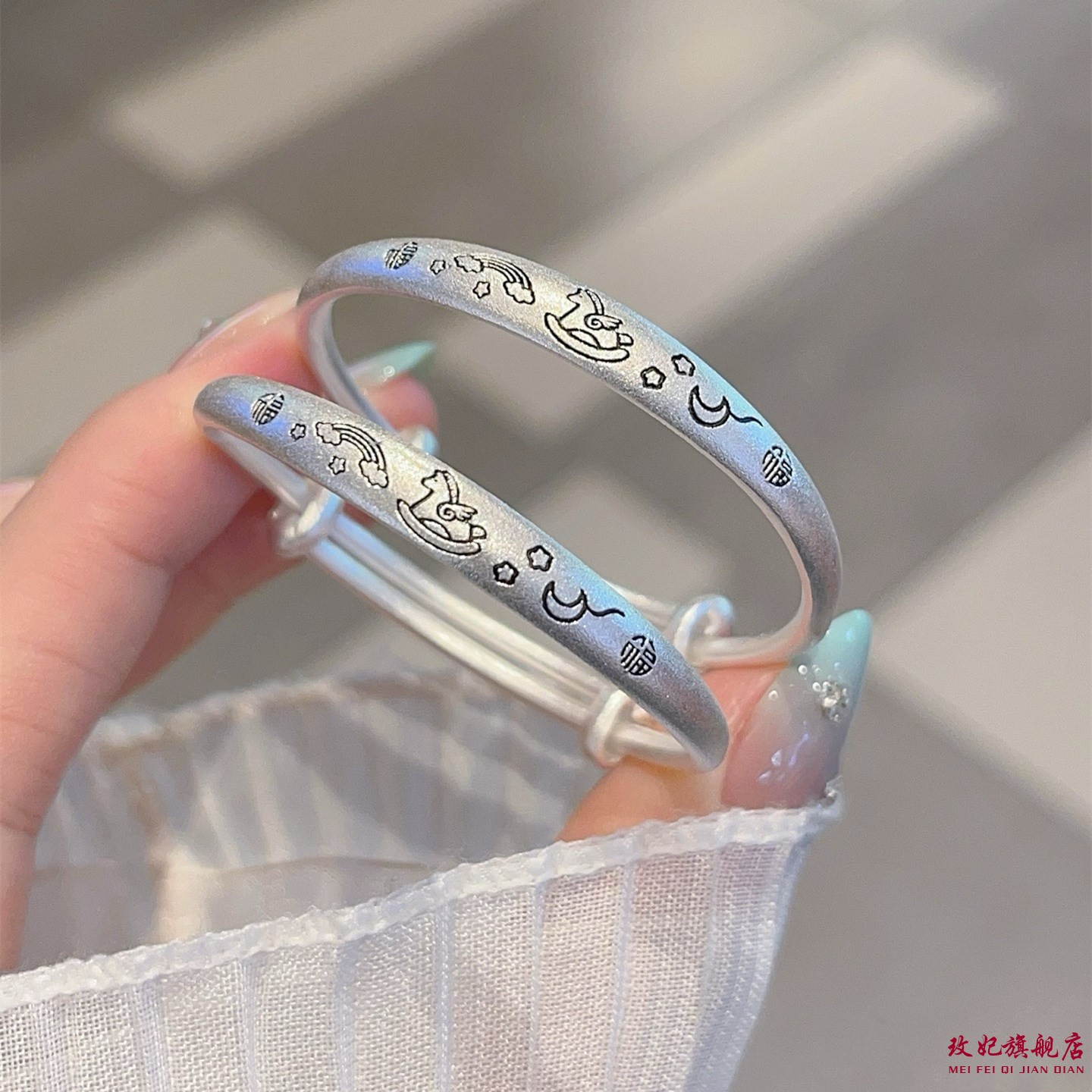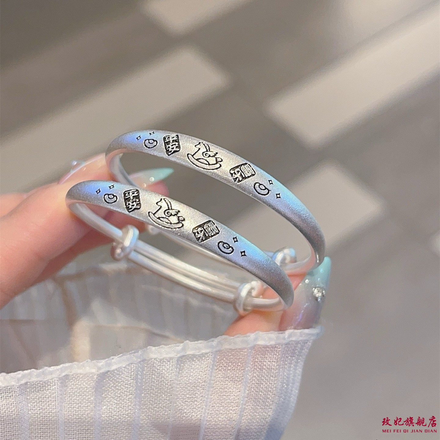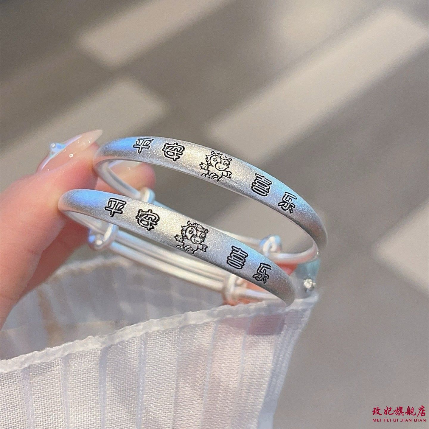 香港正生平安喜乐生肖马纯银手镯足银9999宝宝婴儿小孩子满月礼物