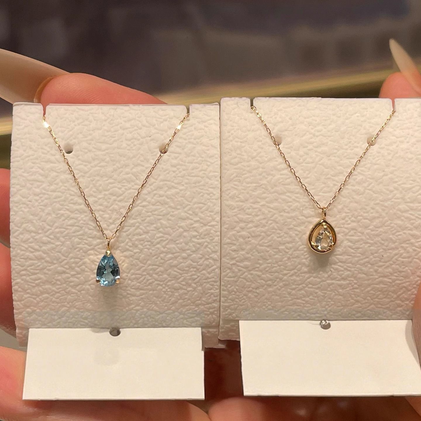 蓝色mini水滴吊坠项链女款2025新爆款高级感锁骨颈链轻奢小众配饰