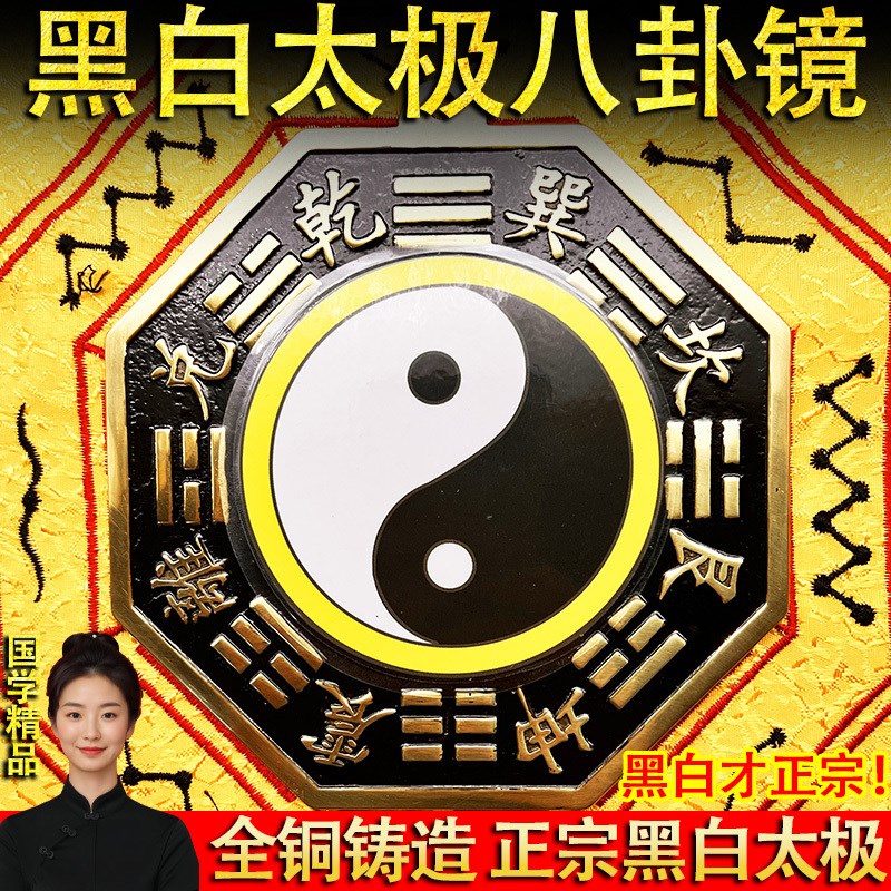 速发纯铜阴太极八卦镜门口挂件黑白阴鱼平面八卦图镜家用窗户台