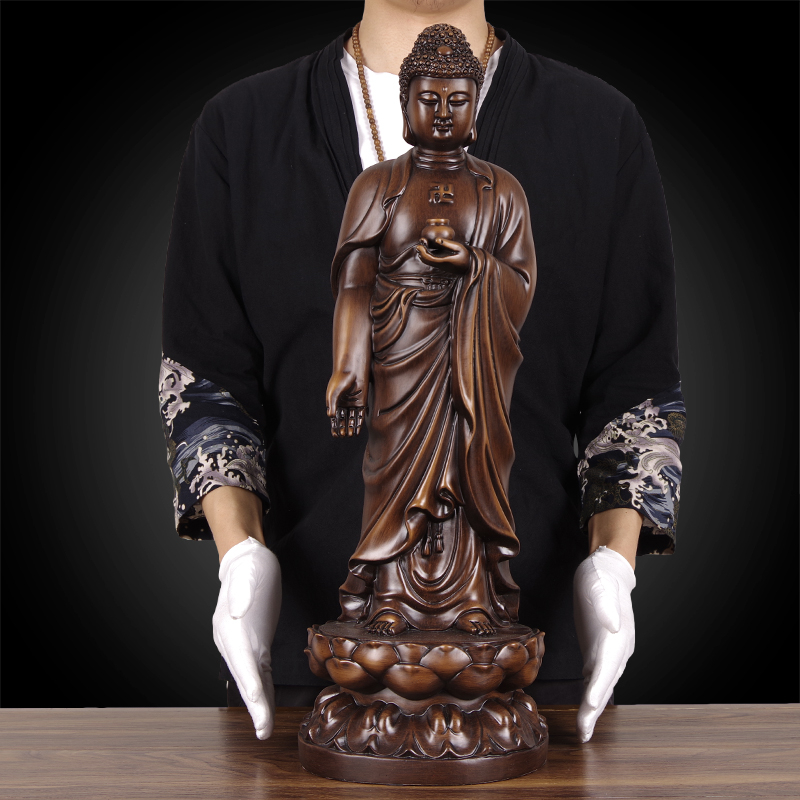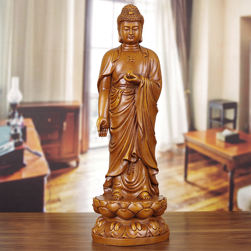 纯实木雕像如来佛祖摆件释迦牟尼佛像坐莲纯木质雕塑家用供奉神像