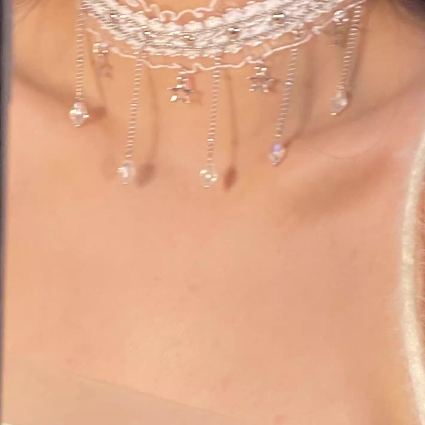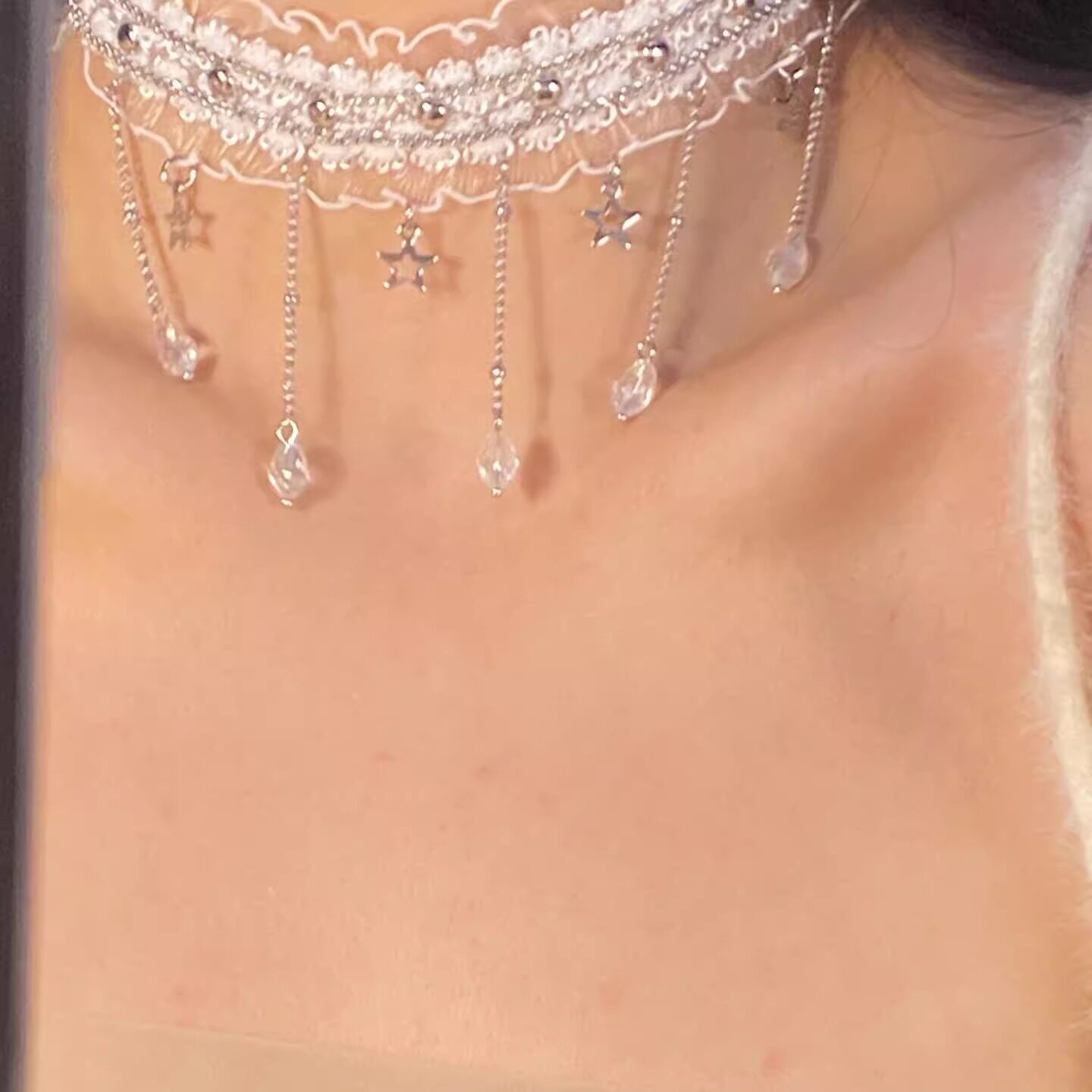 超仙!蕾丝星星流苏choker项圈白色花边流苏项链锁骨链设计感颈饰