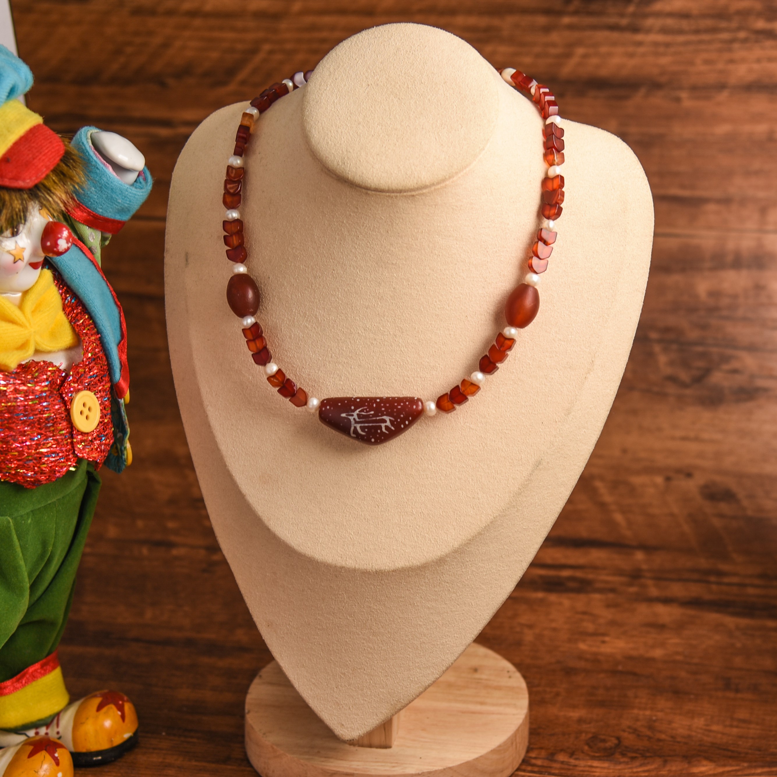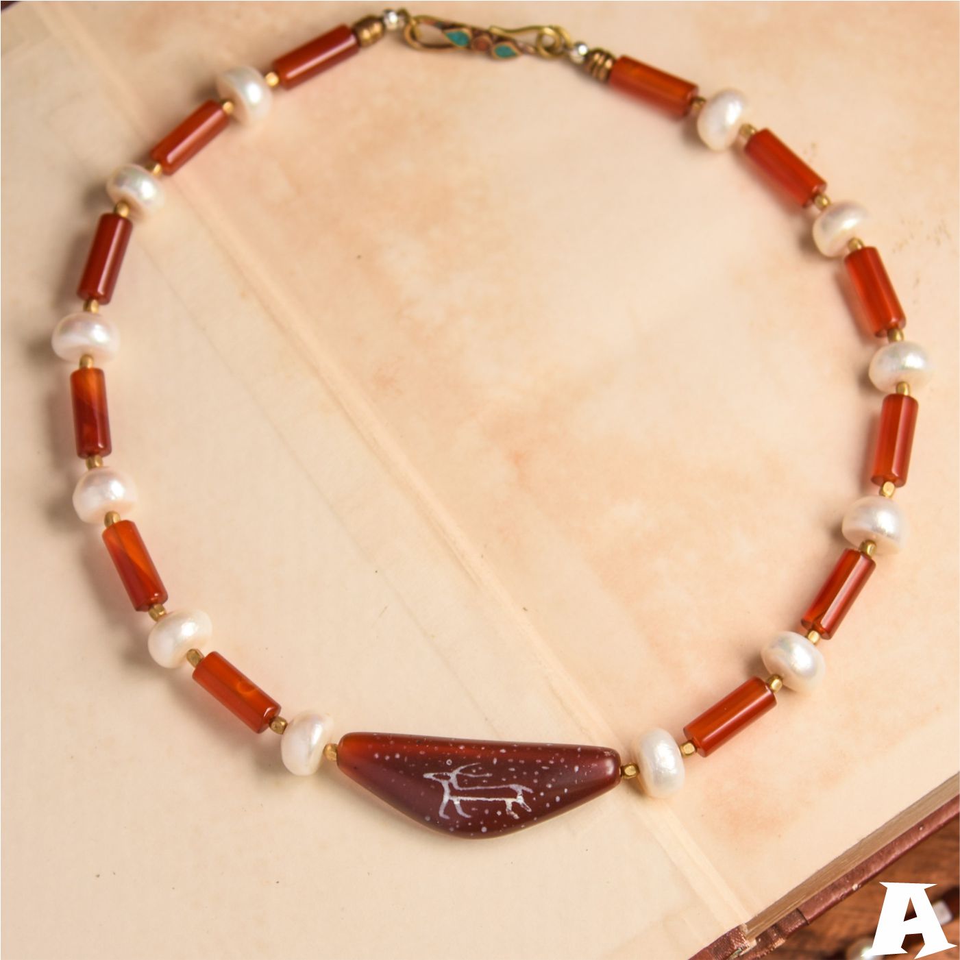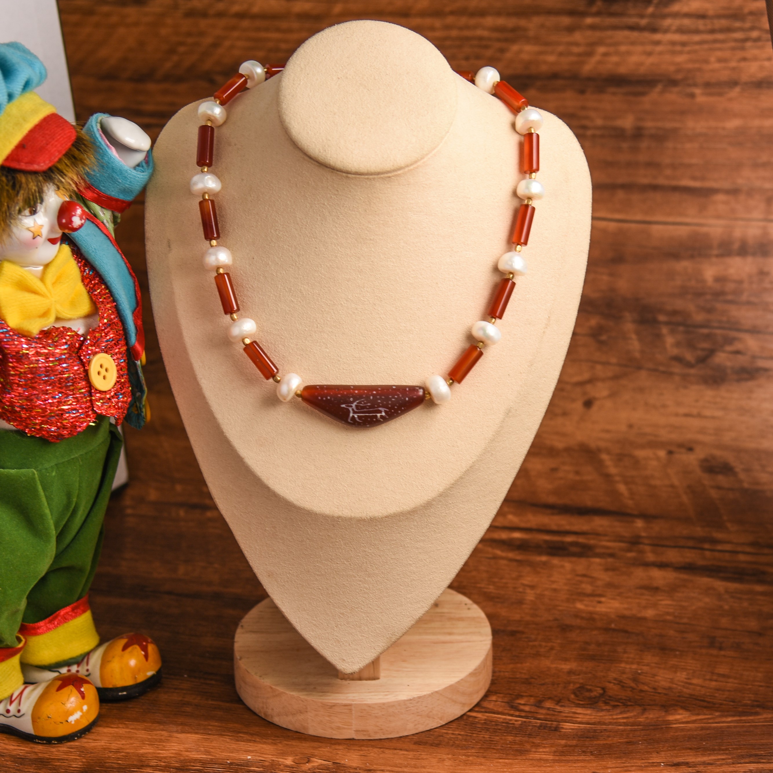 海贼王Dr.希鲁鲁克粉红色的雪 天然珍珠红玛瑙银珠拼接项链
