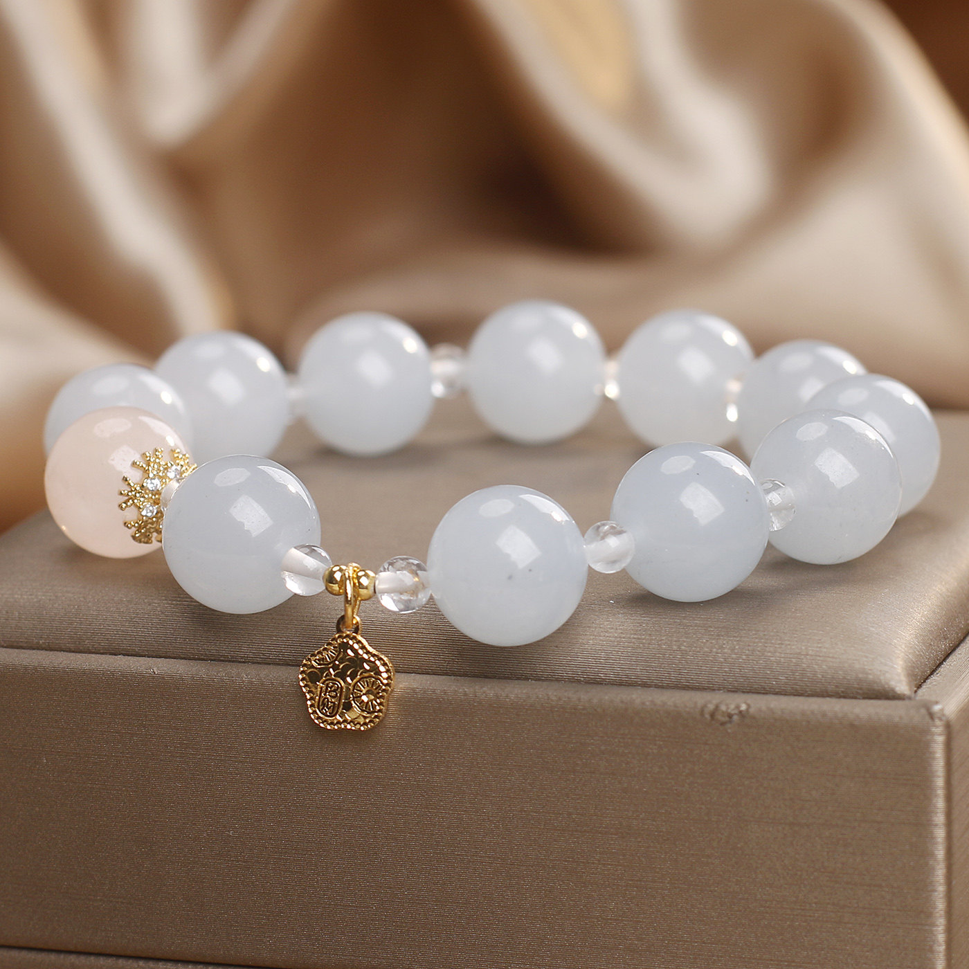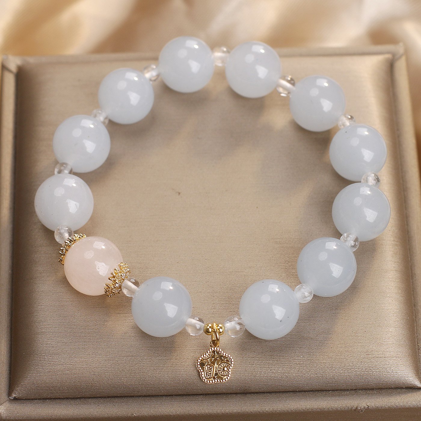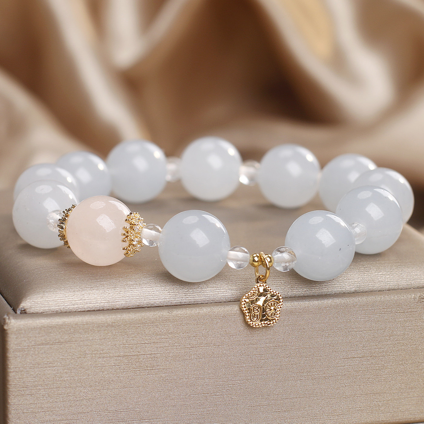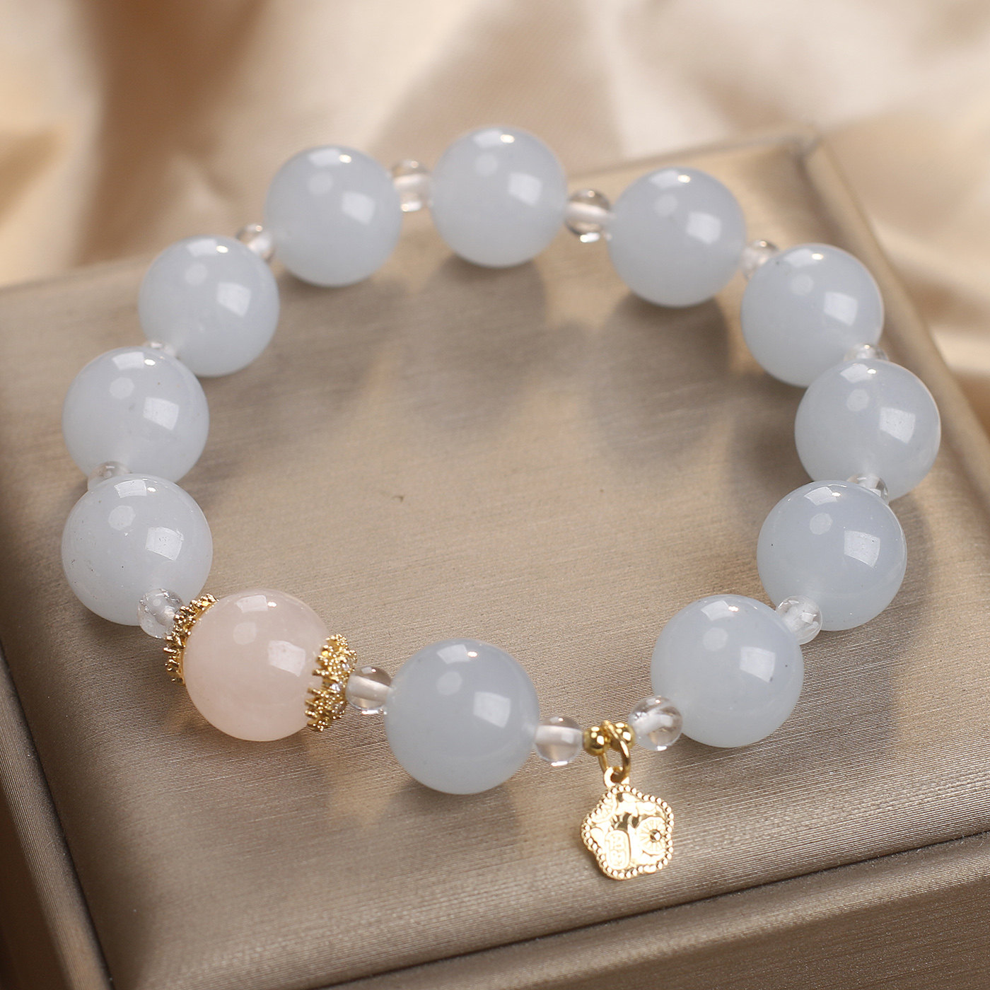 天然蓝色玉髓水晶手链女气质显白粉水晶转运珠串珠手串送闺蜜礼物