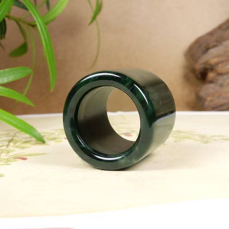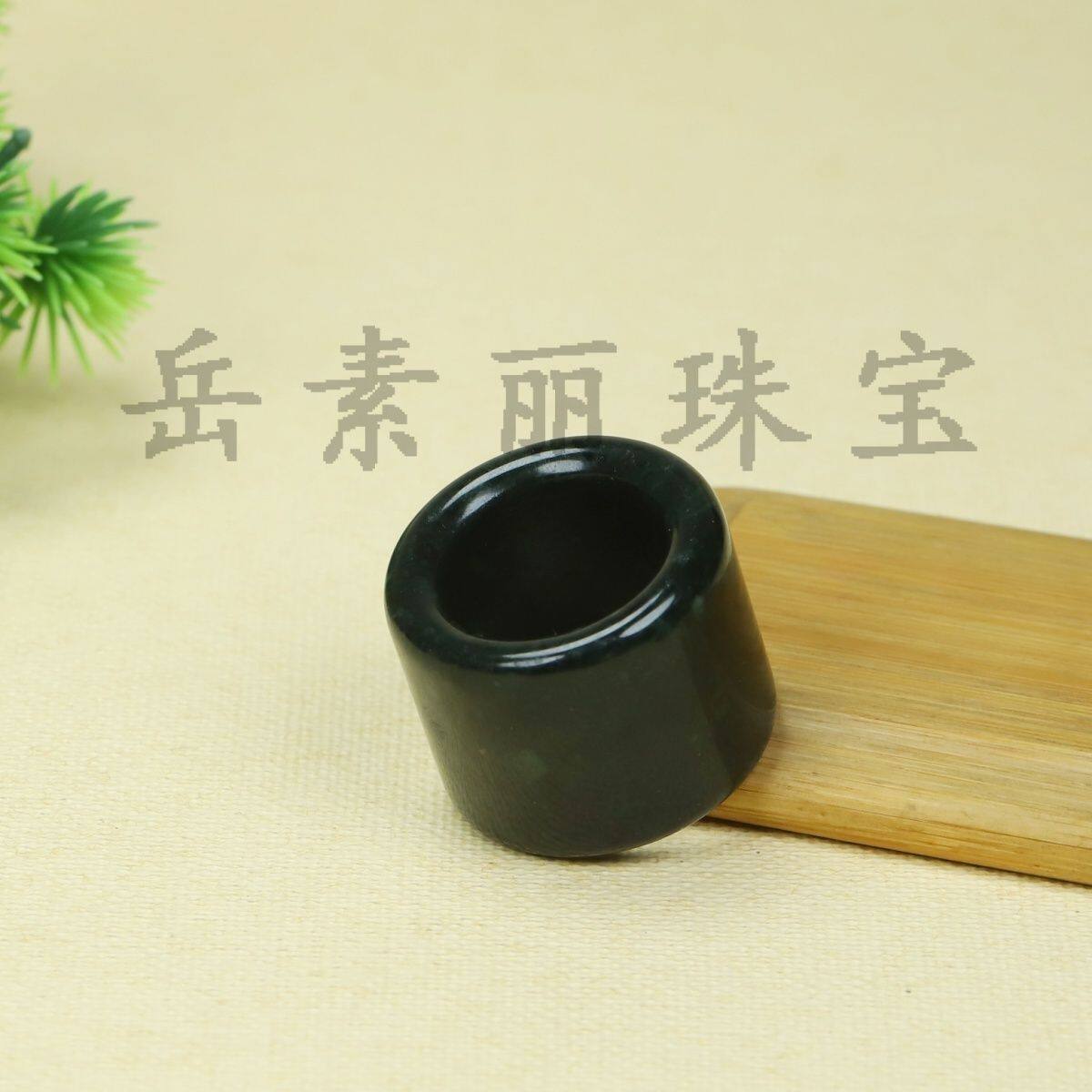 天然药王石扳指戒指西藏祖母绿墨绿养生男士磁疗玉石男女石头指环