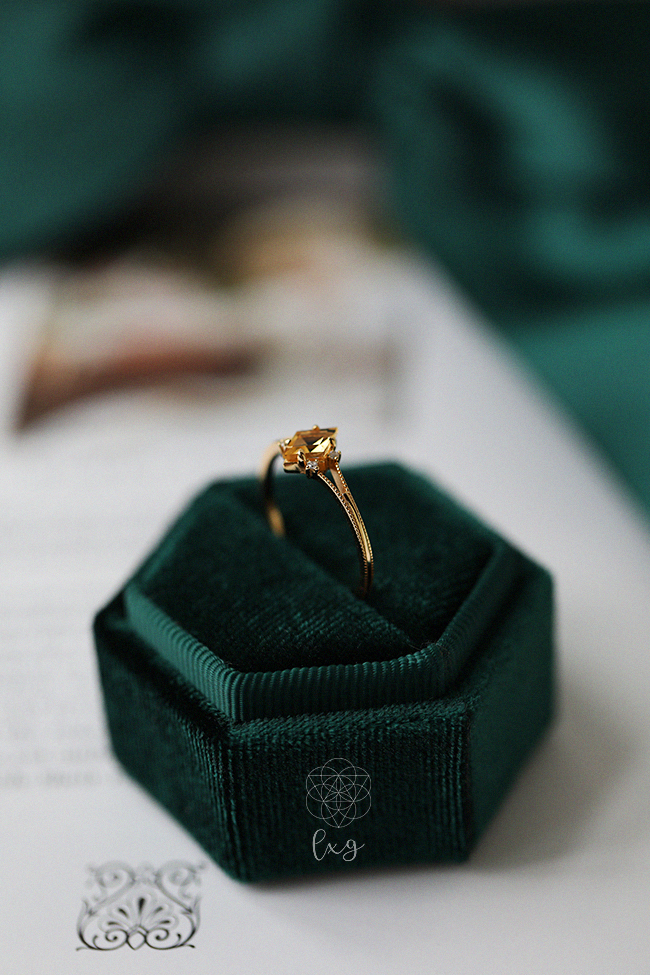 《小黄莺》2025夏法式复古菱形天然黄水晶925银镀金戒指小巧气质