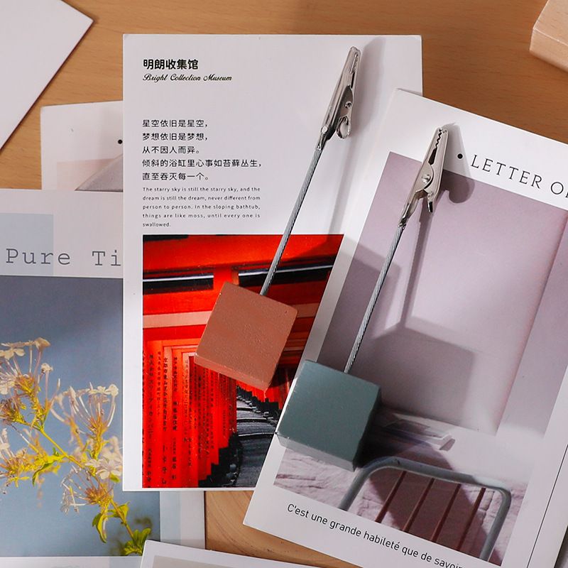 可爱彩色桌面小摆件原木头立式便签夹相片标签夹照片留言鳄鱼夹子