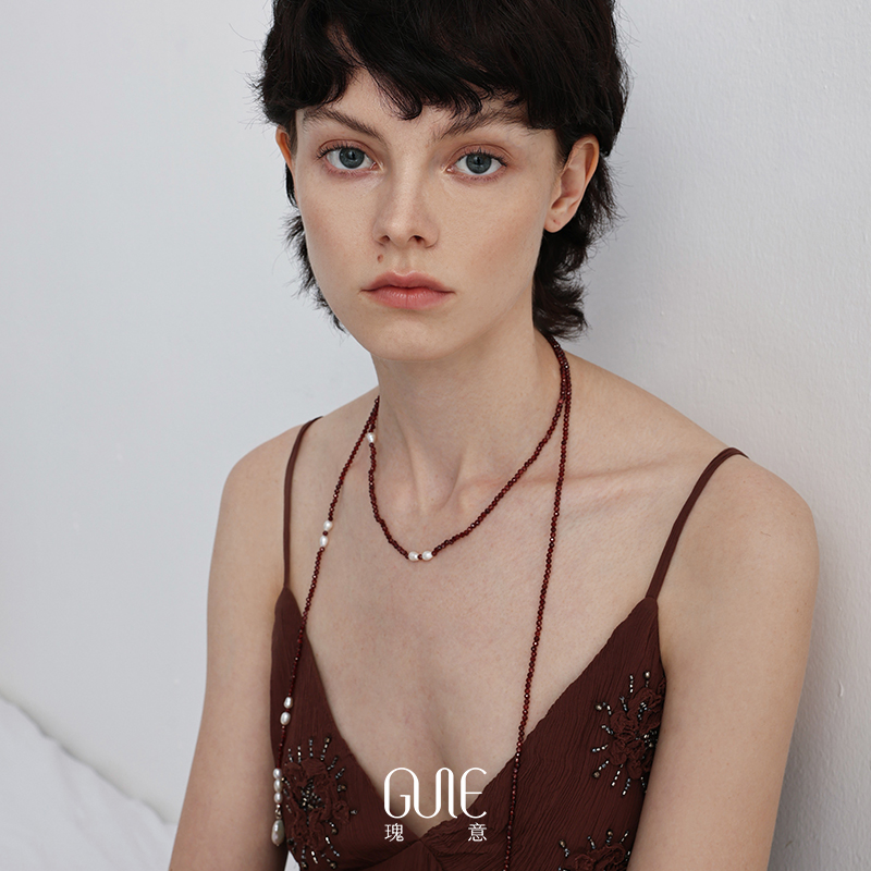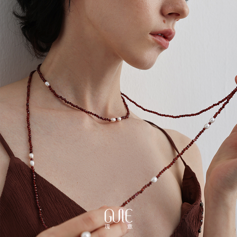 瑰意石榴石巴洛克开放式长项链2025新款爆款高级感小众设计长链