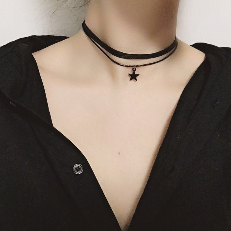 choker双层黑色星星颈链女项圈短款锁骨链日韩百搭颈带项链饰品
