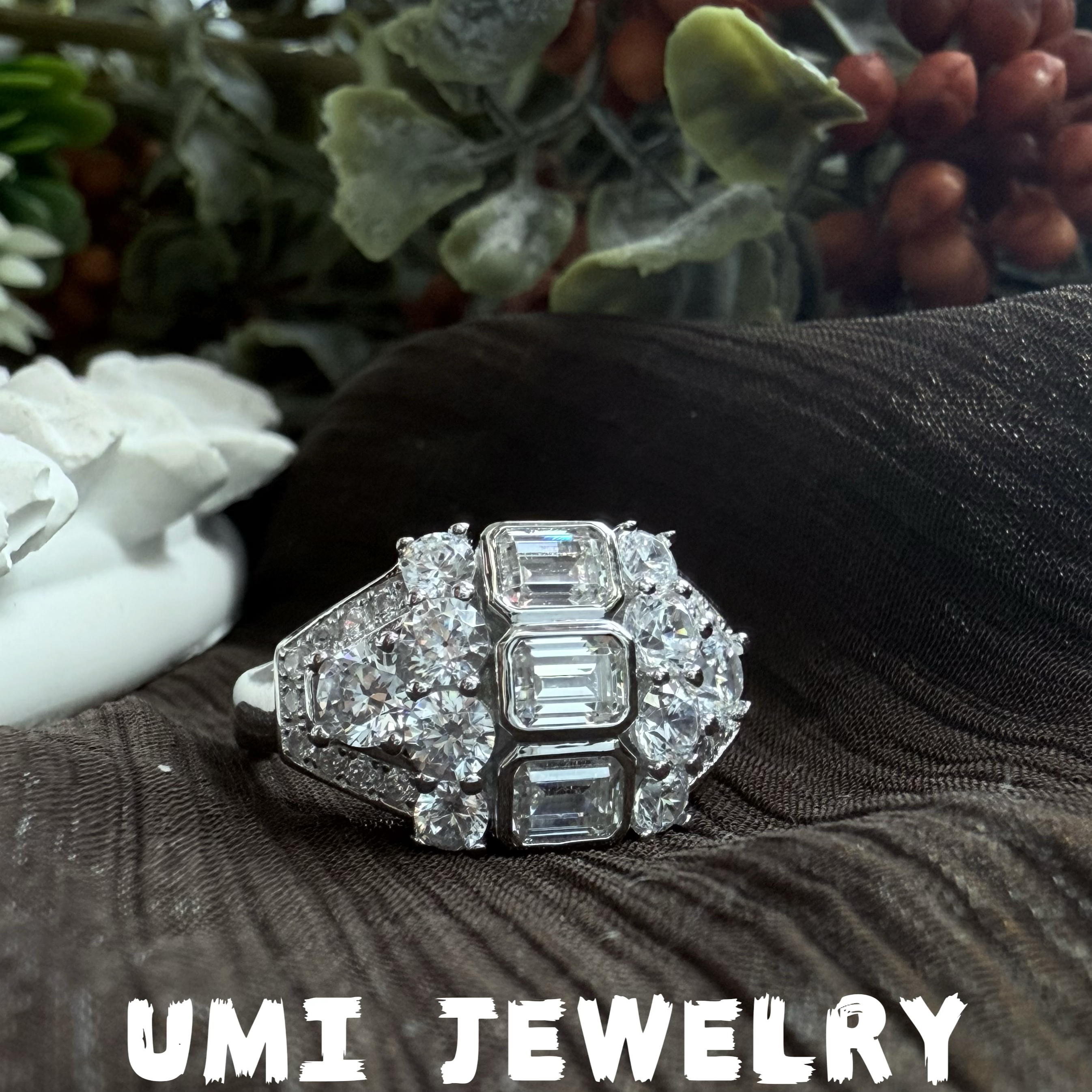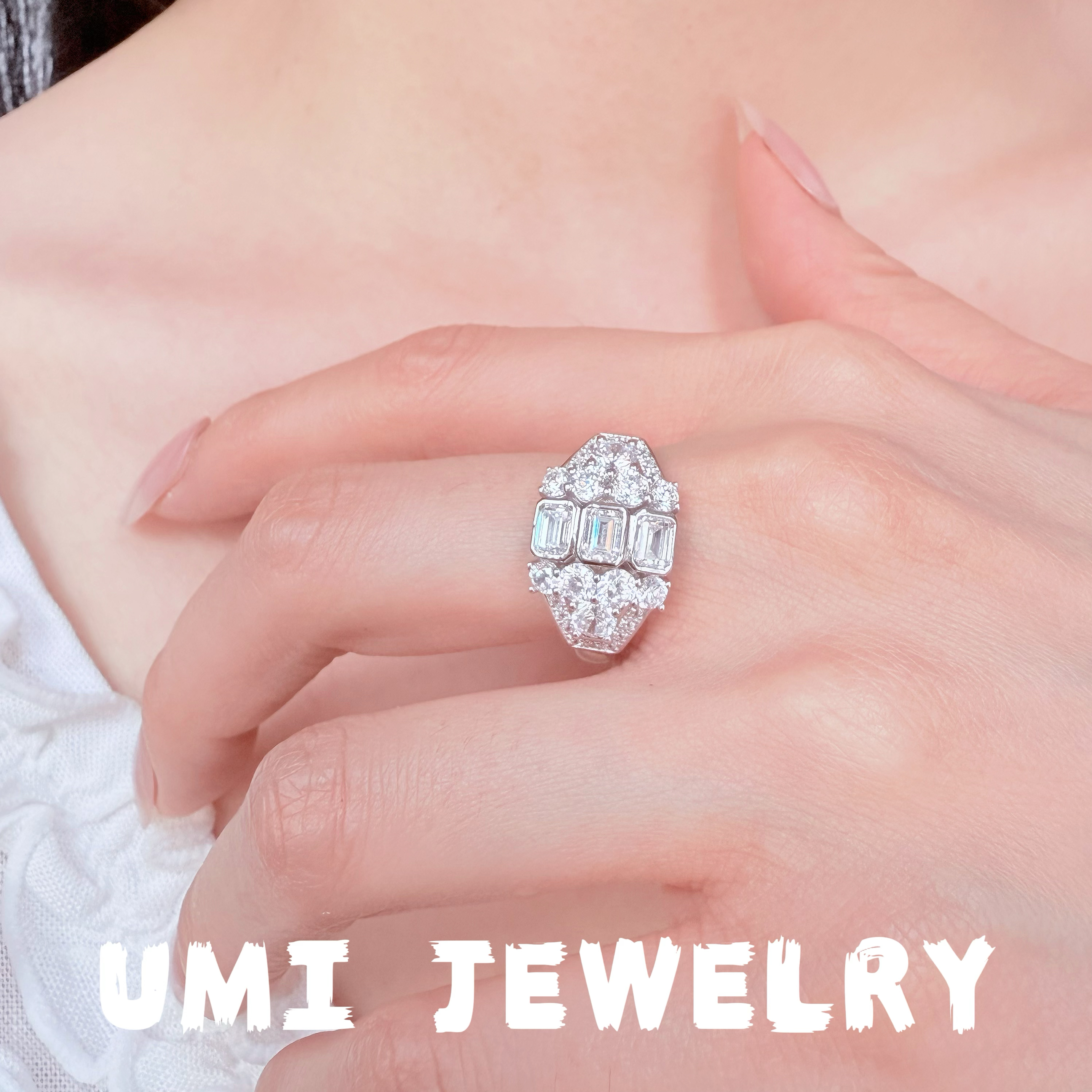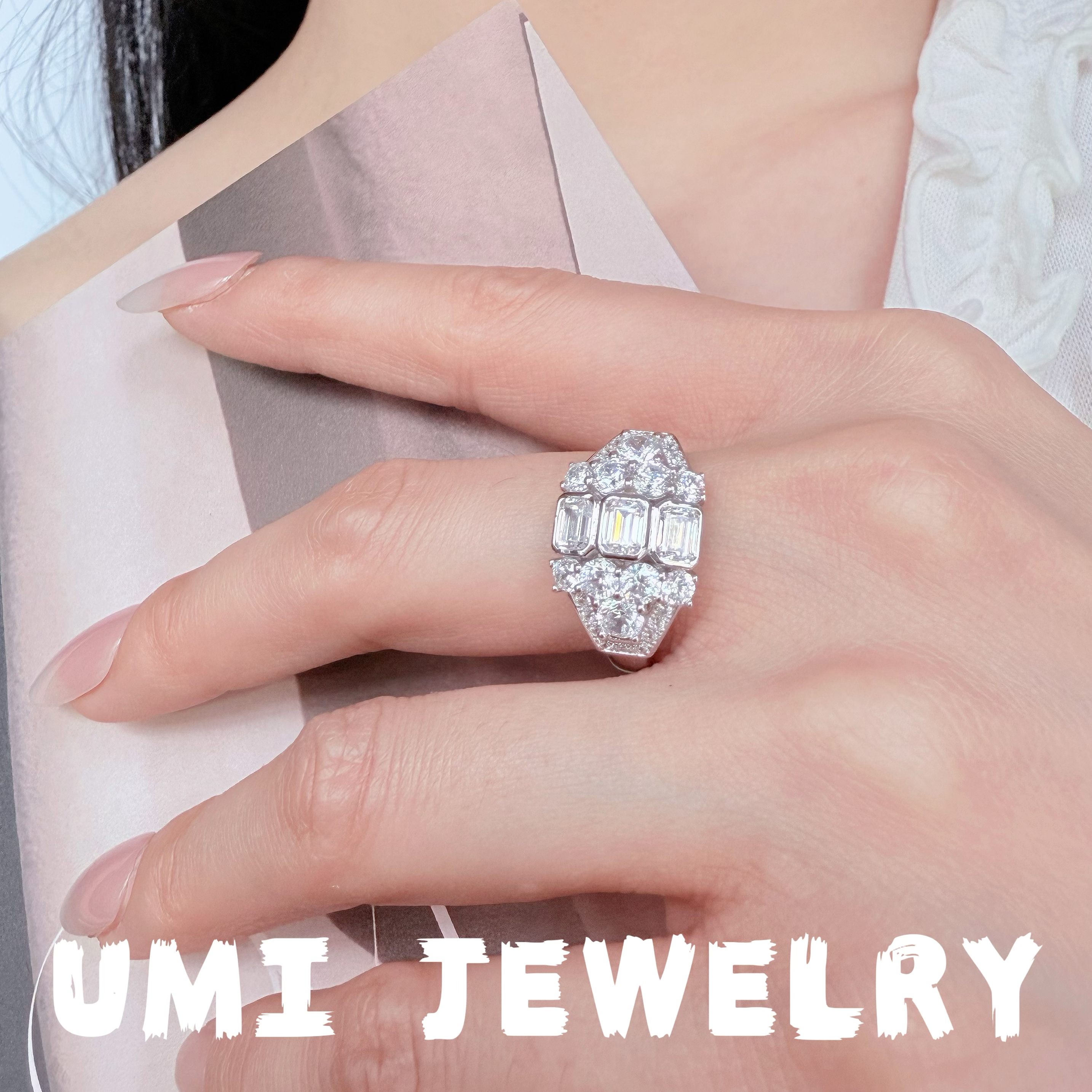UMI家·轻珠宝/S925银镀k金·满钻方糖阿斯切戒指轻奢女王高级感