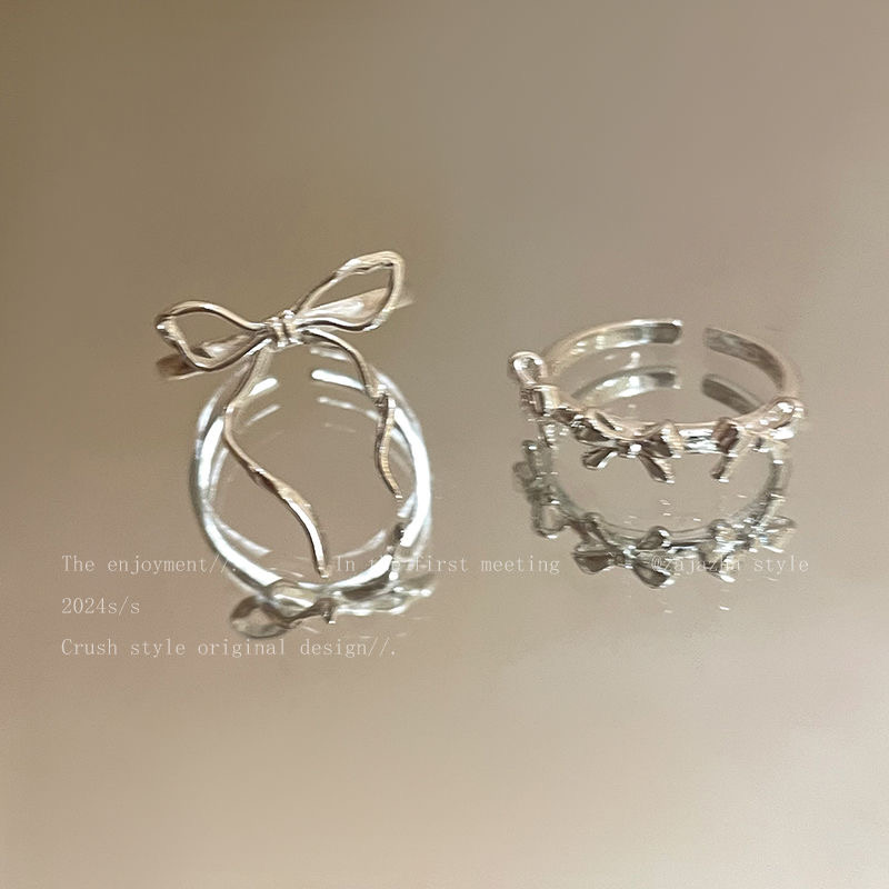 银色蝴蝶结线条戒指女夏ins简约冷淡风网红食指戒开口可调节指环