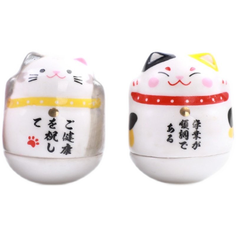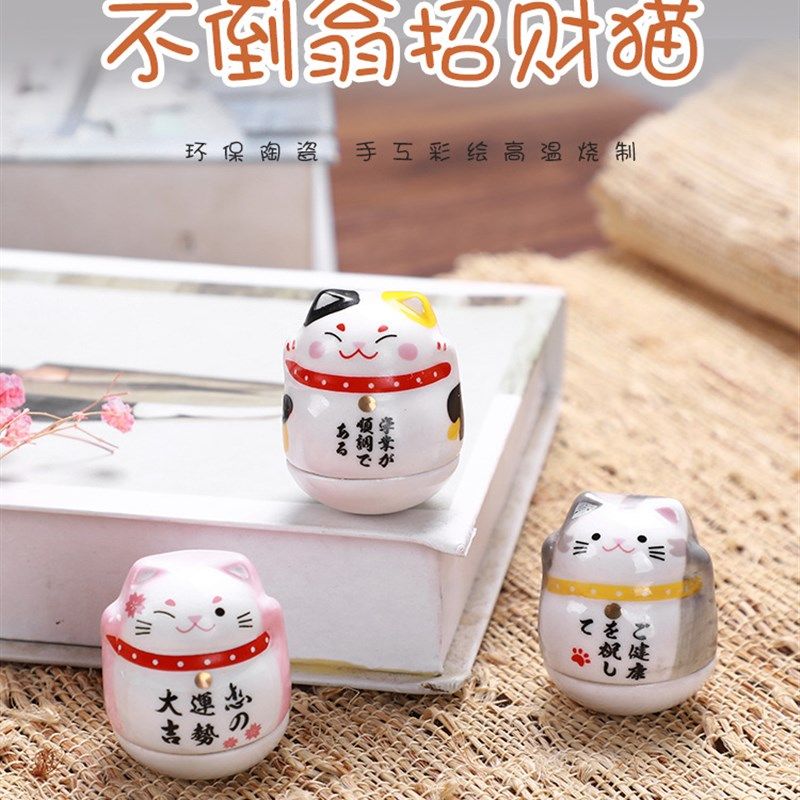 陶瓷日式创意礼品陶瓷招财恋爱来运猫摆件卡通猫不倒翁粉色灰色