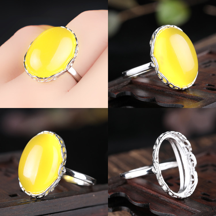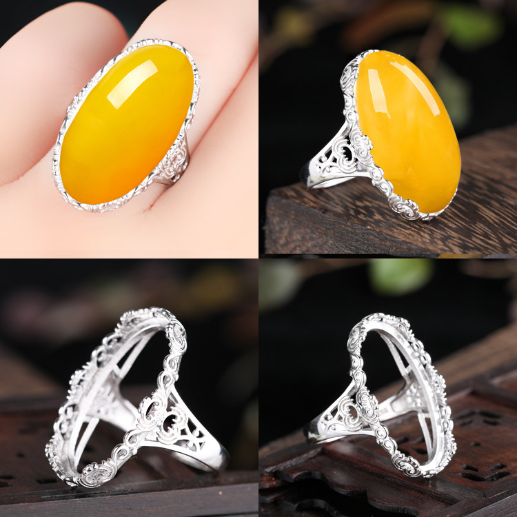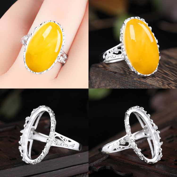 S925纯银戒指空托镶嵌蜜蜡绿松石活口女款戒托 15*24 15*20 15*23