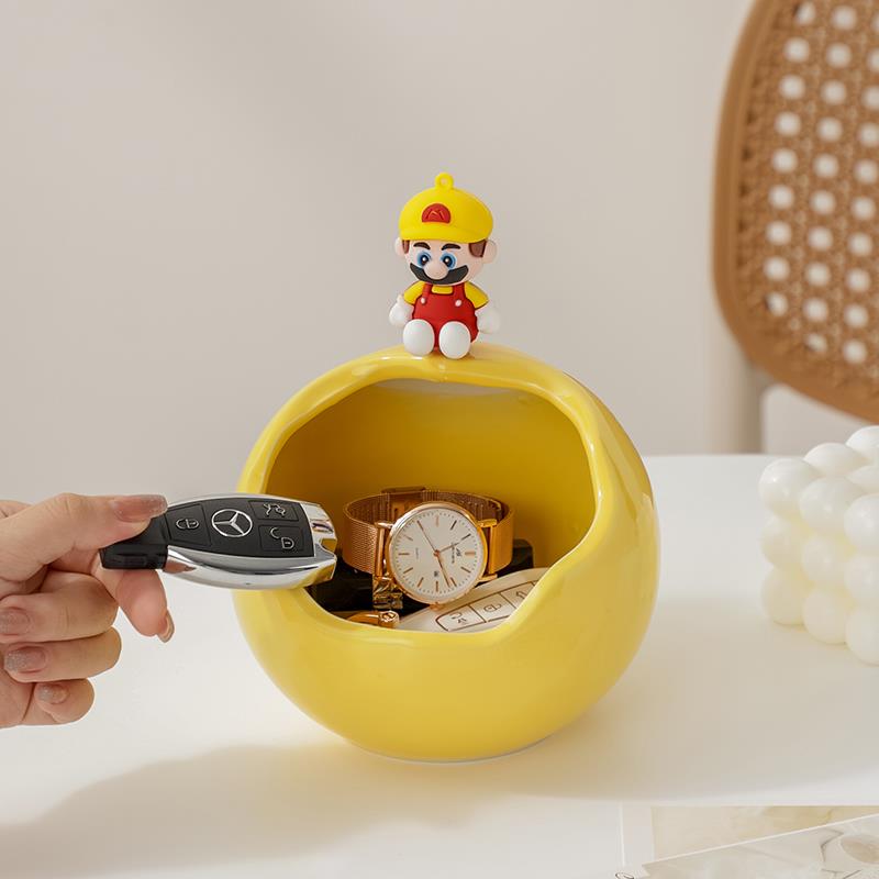 卡通玛利欧入户玄关钥匙收纳陶瓷摆饰可爱创意桌面家居装饰高级感