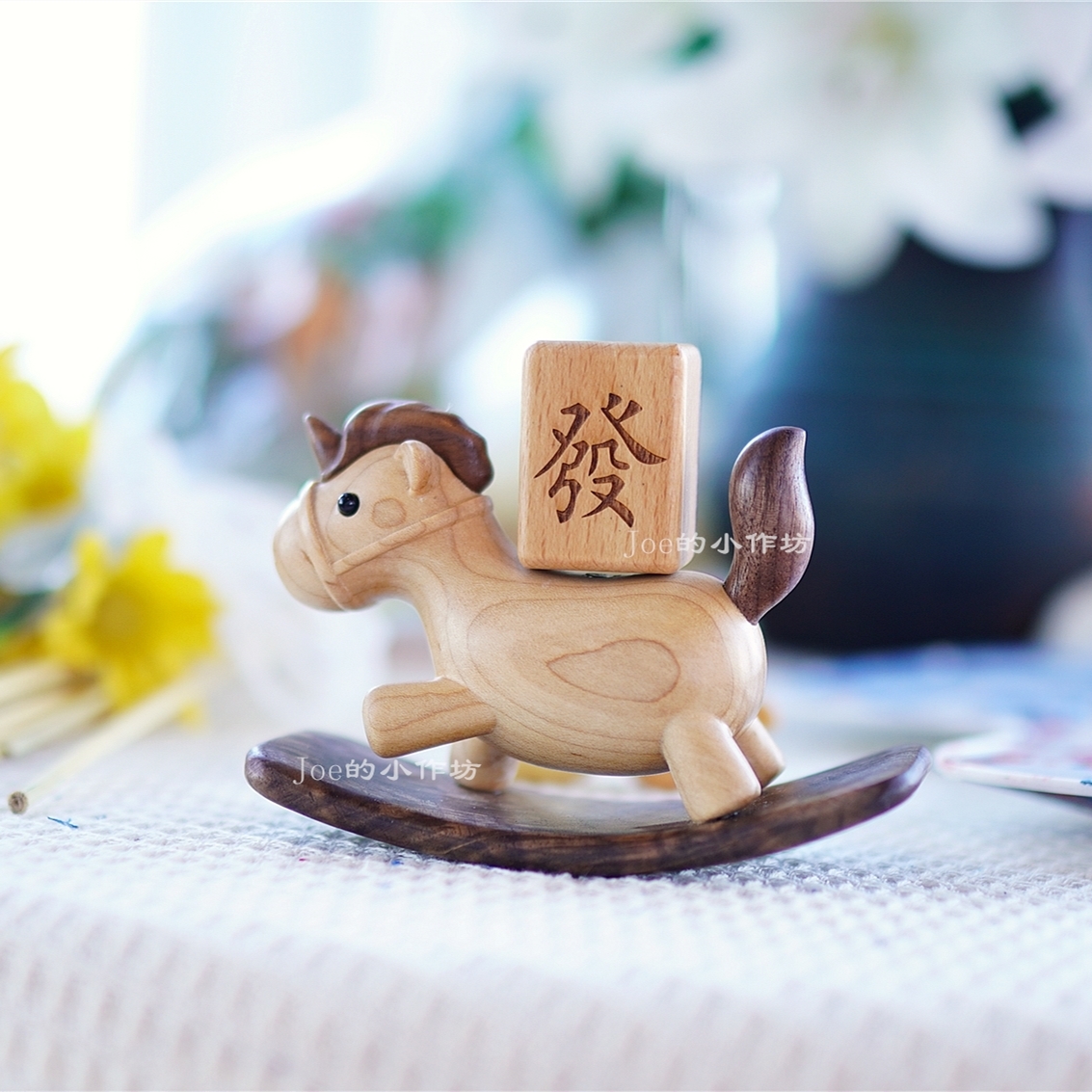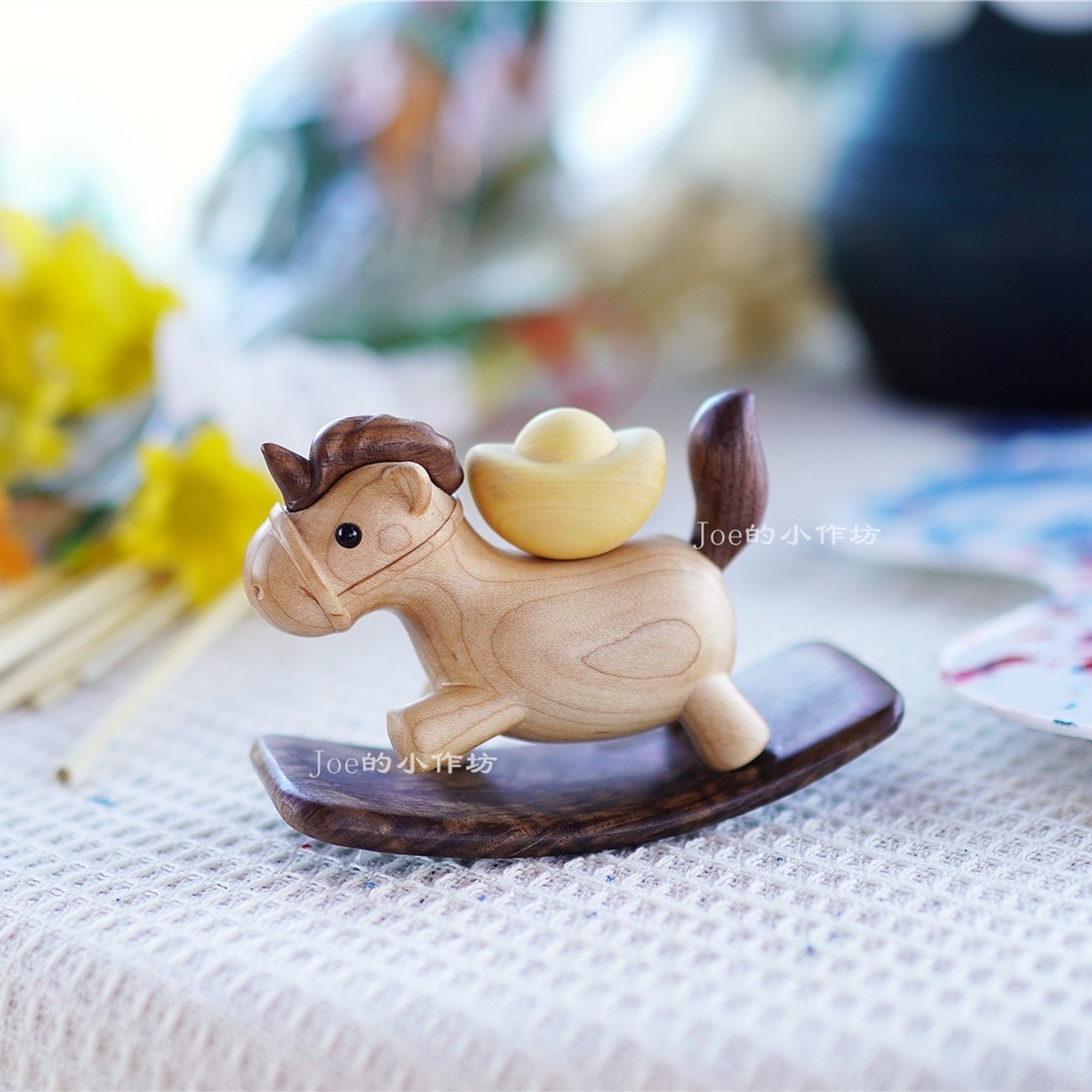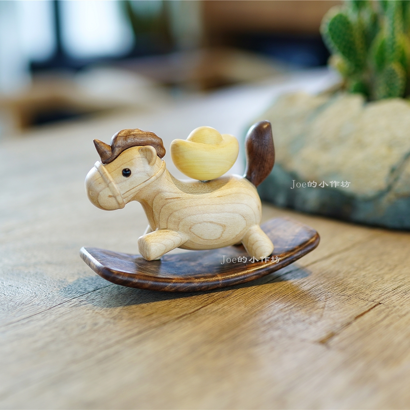 元宝摇摇马实木摆件可爱创意家居装饰品马上發桌面摆件车载送礼
