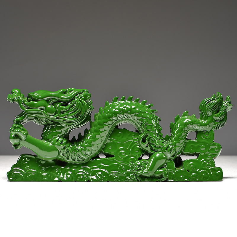绿色木质龙摆件实木雕刻龙生肖龙飞龙摆件家居客厅办公装饰送礼品