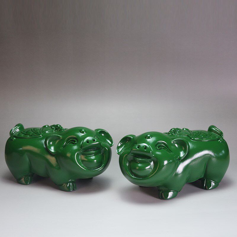 绿色木雕猪实木质动物十二生肖猪家居客厅装饰红木工艺品
