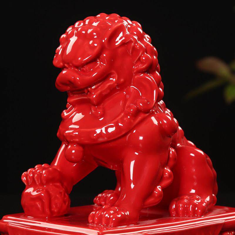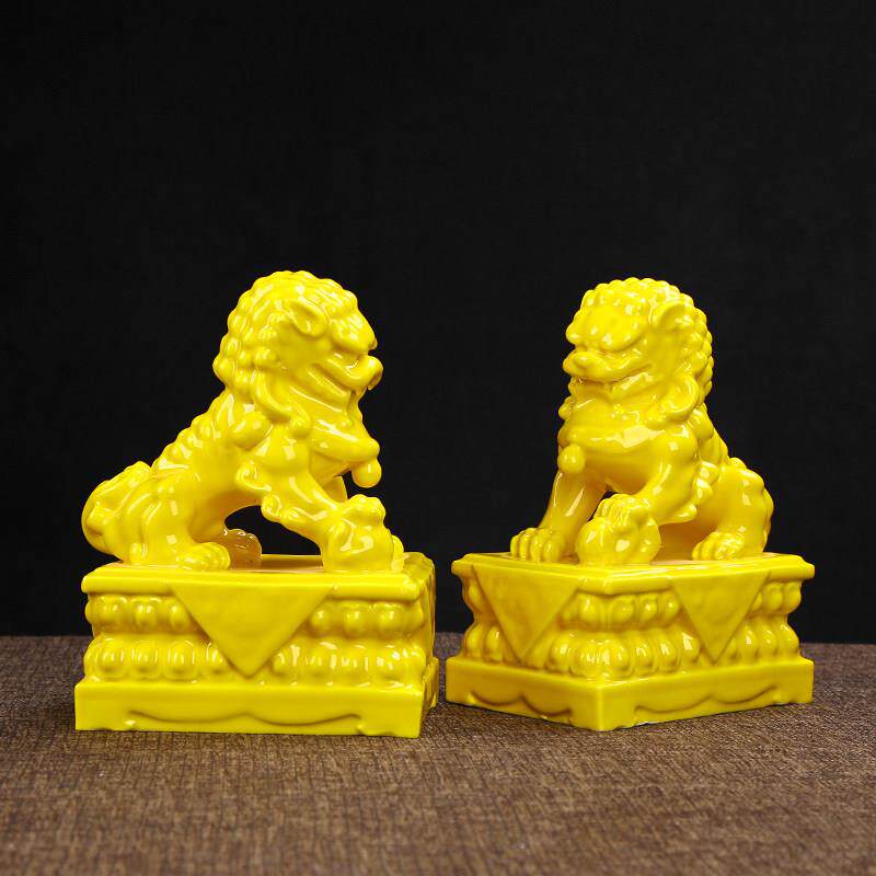 陶瓷白色招财风水狮子黄色红色石狮子一对看门店铺开业家居摆饰