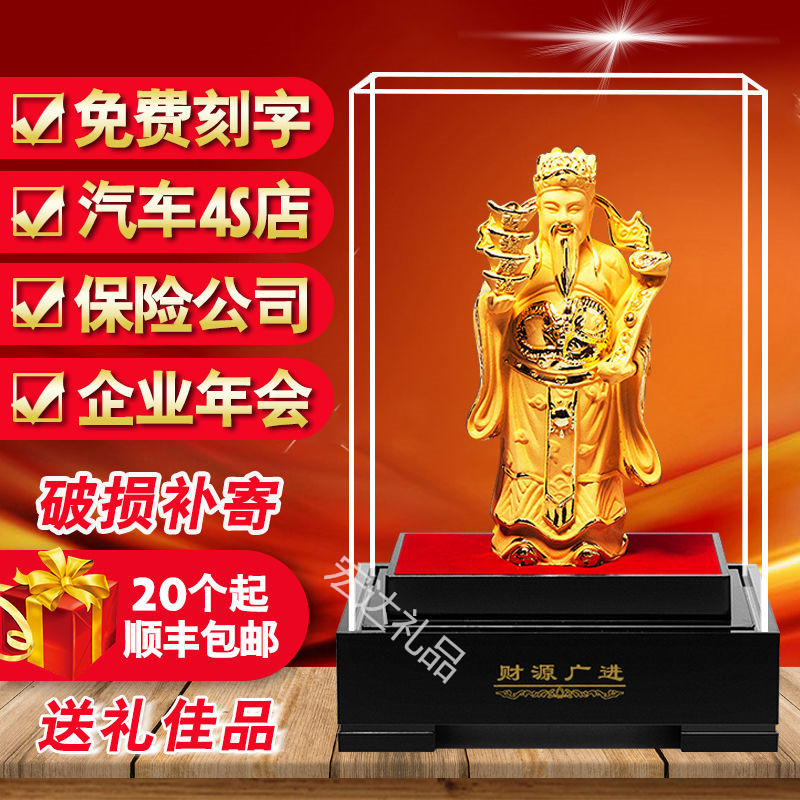 绒沙金财神爷摆件镀金工艺品办公室汽车4S店活动送礼开业定制礼品